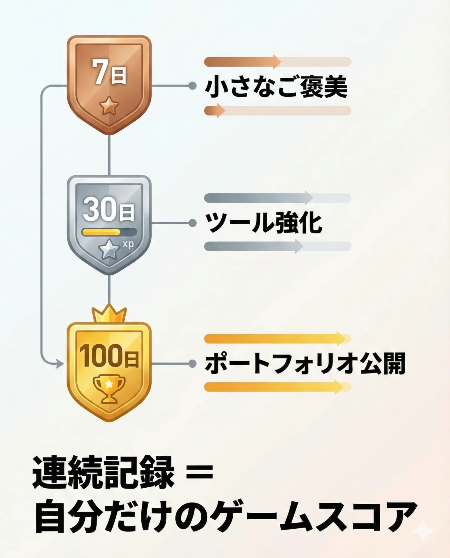 - 連続7日達成で、自分に小さなご褒美を用意する