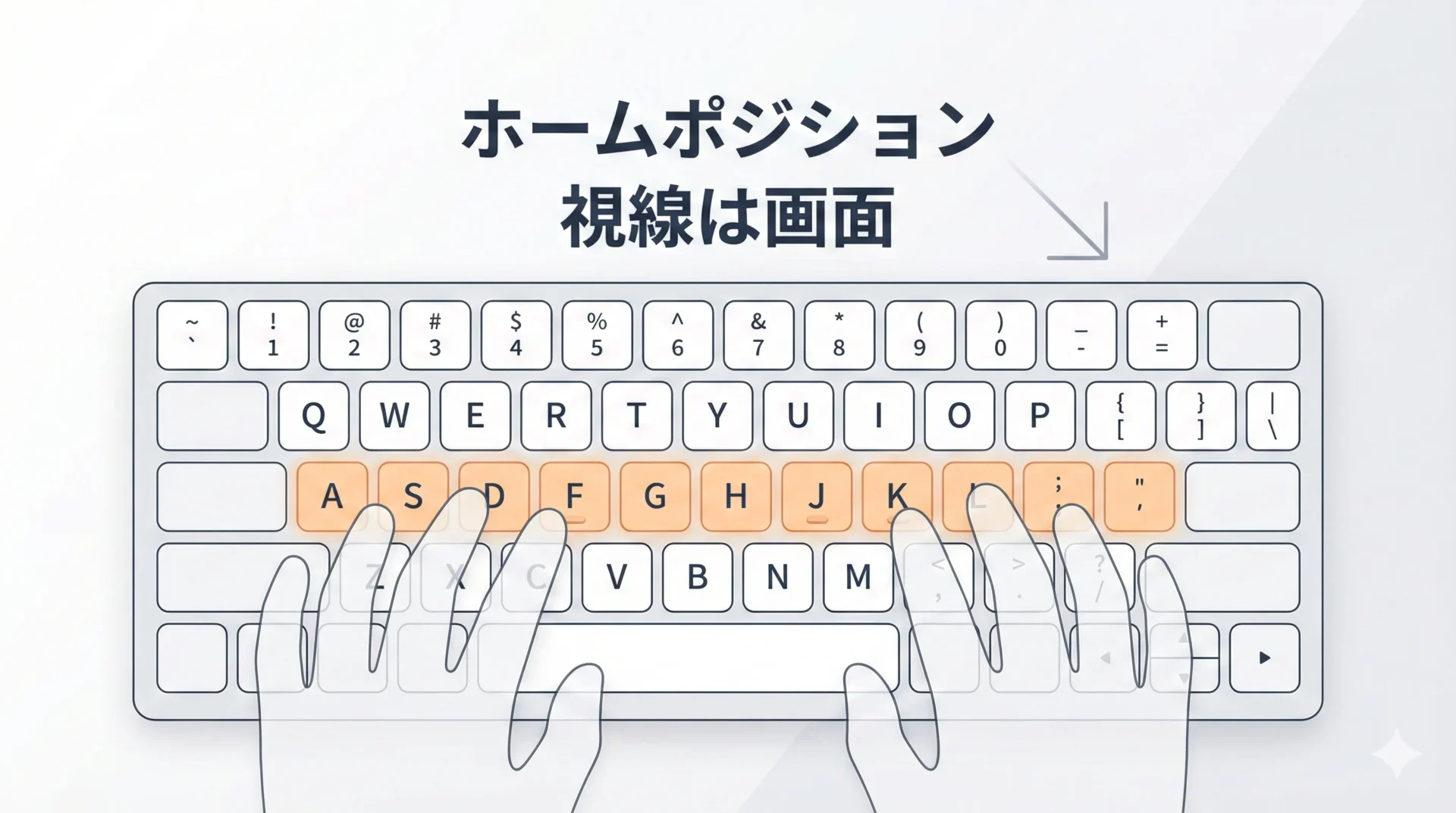 ブラインドタッチの出発点は、ホームポジションの徹底です。
