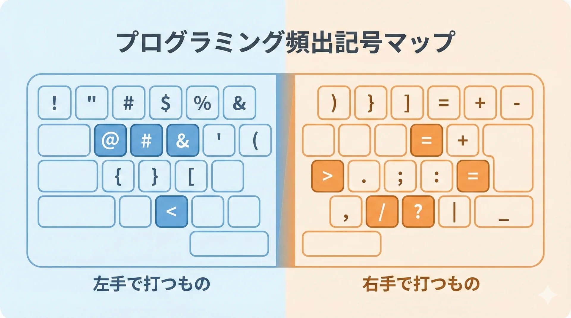 ここで重要なのは、「どの指で、どの記号を打つのか」をあらかじめ決めておくことです。