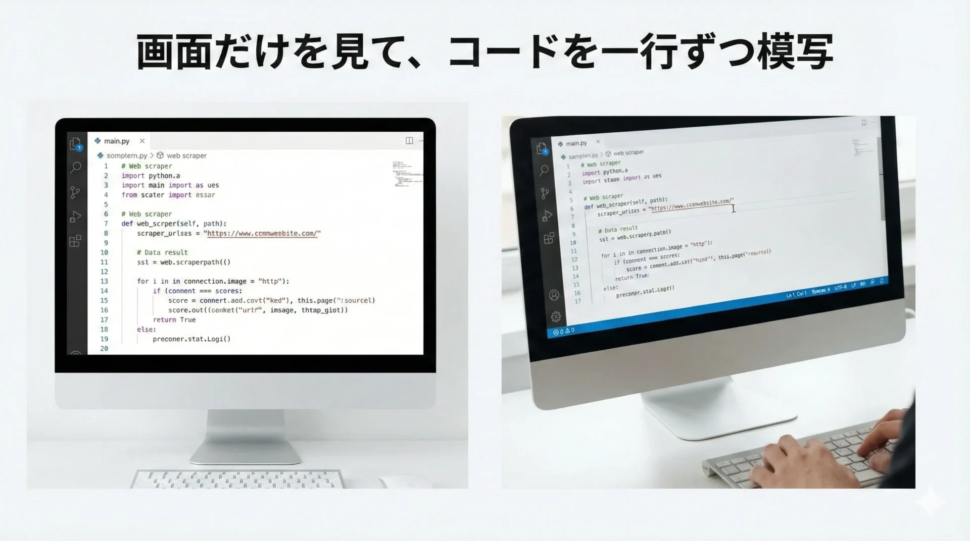 → 20〜30行のコードを、画面を見ながら1行ずつ正確に写す