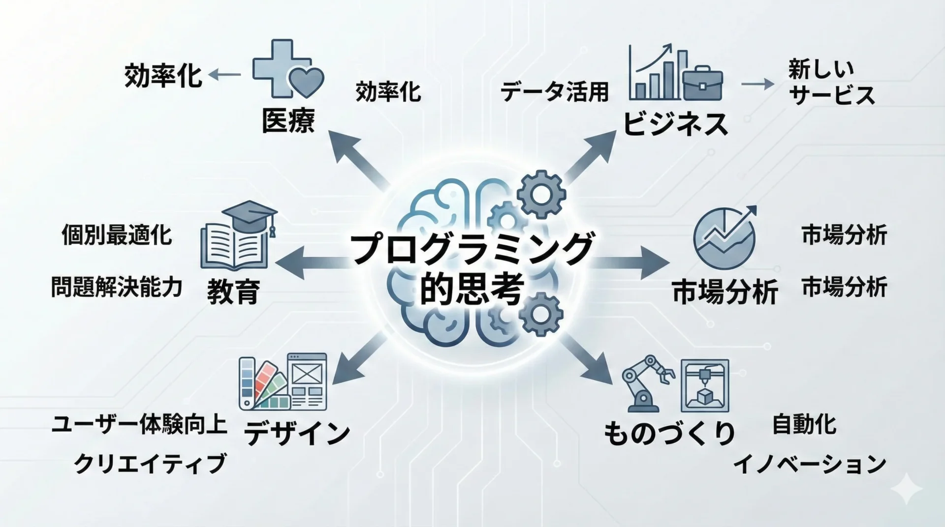 これからの時代、プログラミング的思考は、特別な一部の職業だけに必要なスキルではなく、誰もが身に付けておきたい基礎的な素養になっていきます。