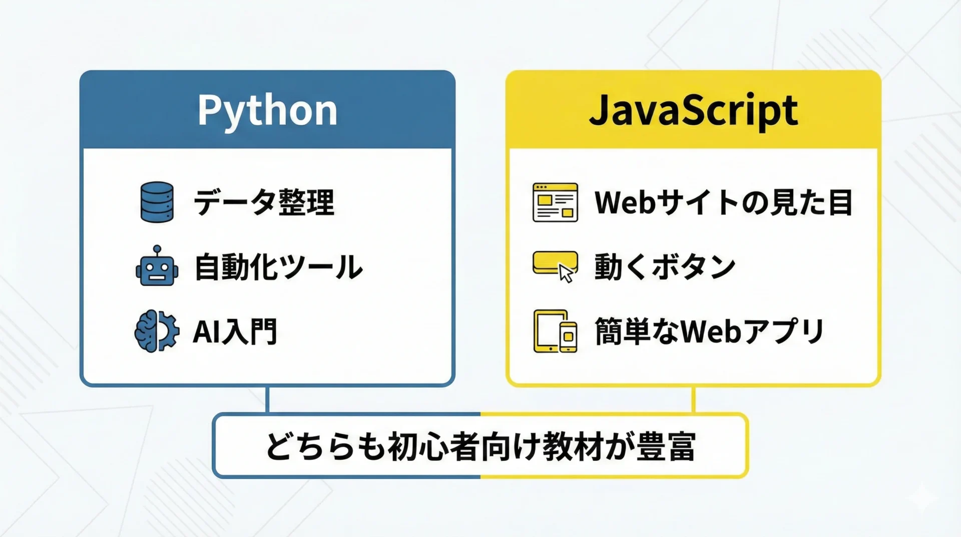 これらを踏まえると、特にPythonとJavaScriptが有力な候補になります。