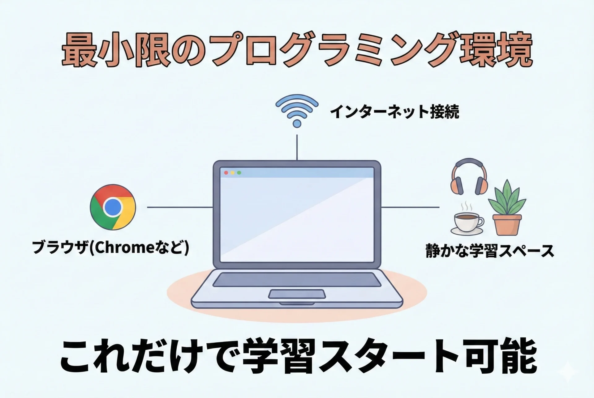 「メールとインターネットくらいしか使っていない」という方でも、プログラミングは始められます。