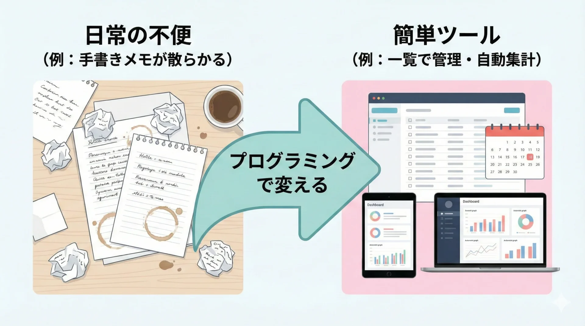 プログラミングを学ぶと、身の回りのちょっとした不便を自分で解決できるようになります。