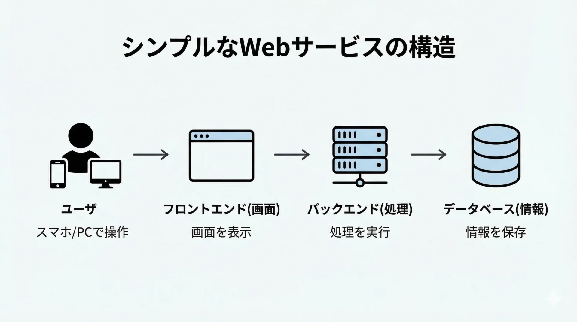 • Webアプリの基本構造(フロントエンド・バックエンド・データベース)