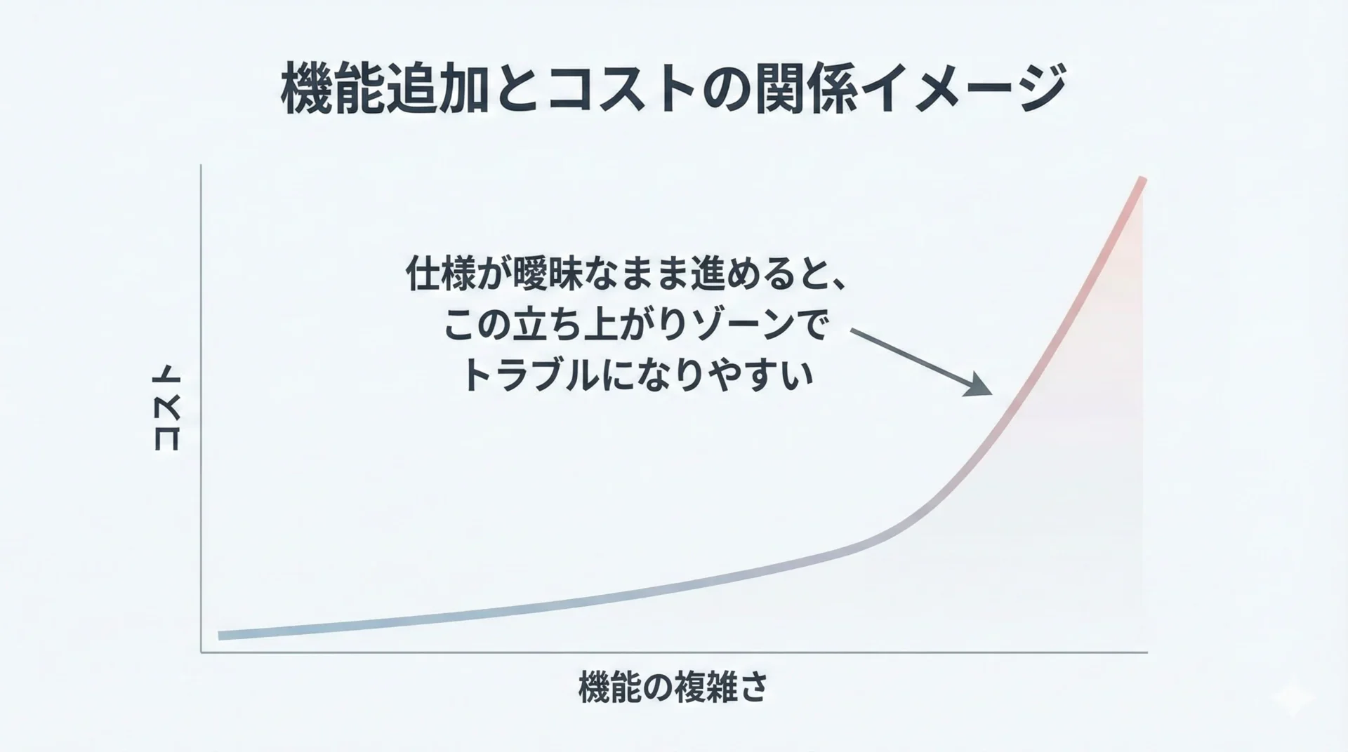 経営者にとって特に重要なのは、「どこからが大変になり、なぜコストが跳ね上がるのか」を理解することです。