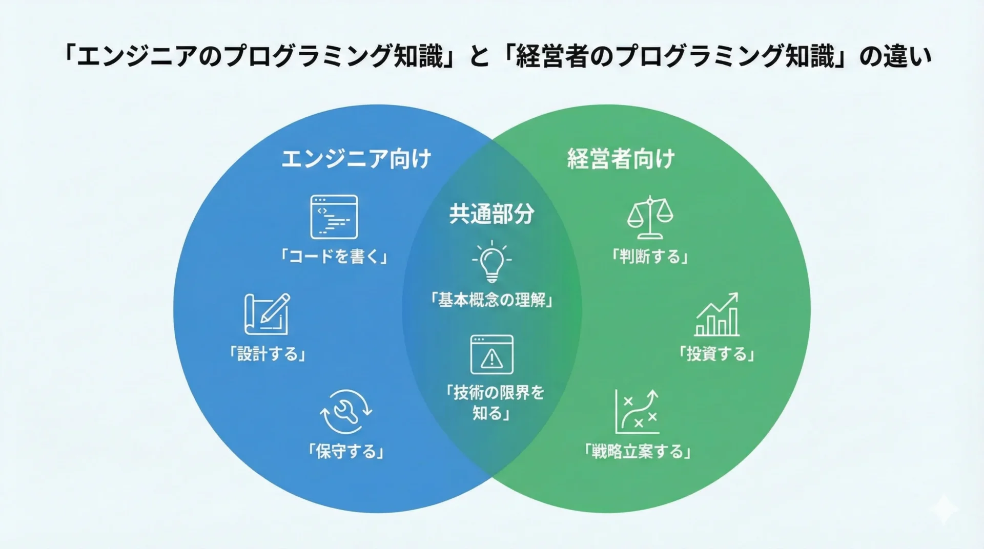 経営者が身につけるべきプログラミング知識は、エンジニアのように日々コードを書くための知識とは異なります。