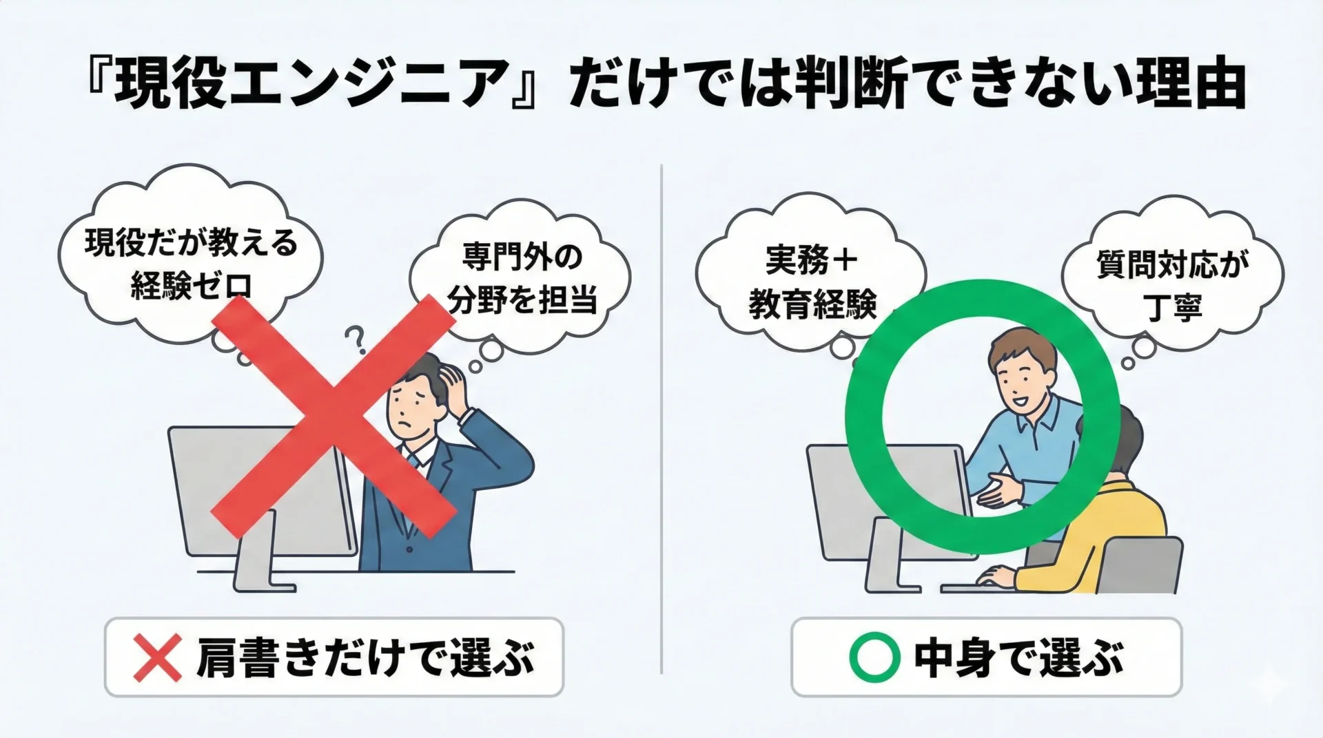 ここでは、「現役エンジニアかどうか」だけにとらわれず、本当に見るべきポイントを整理します。