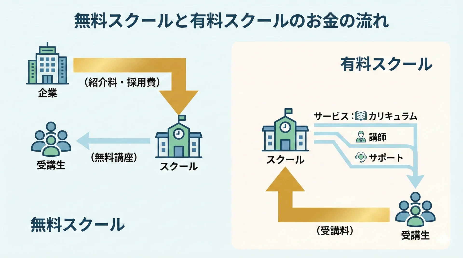 無料スクールと有料スクールの大きな違いは、誰が「お金を払っているか」です。