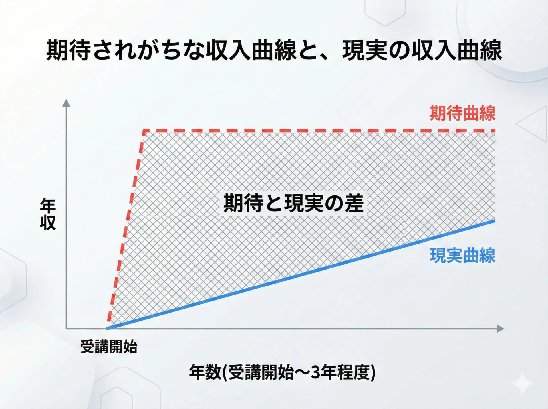 例えば、「3カ月受講すれば、未経験から年収500万円のエンジニアになれる」と期待していた場合、多くの人にとっては非現実的です。