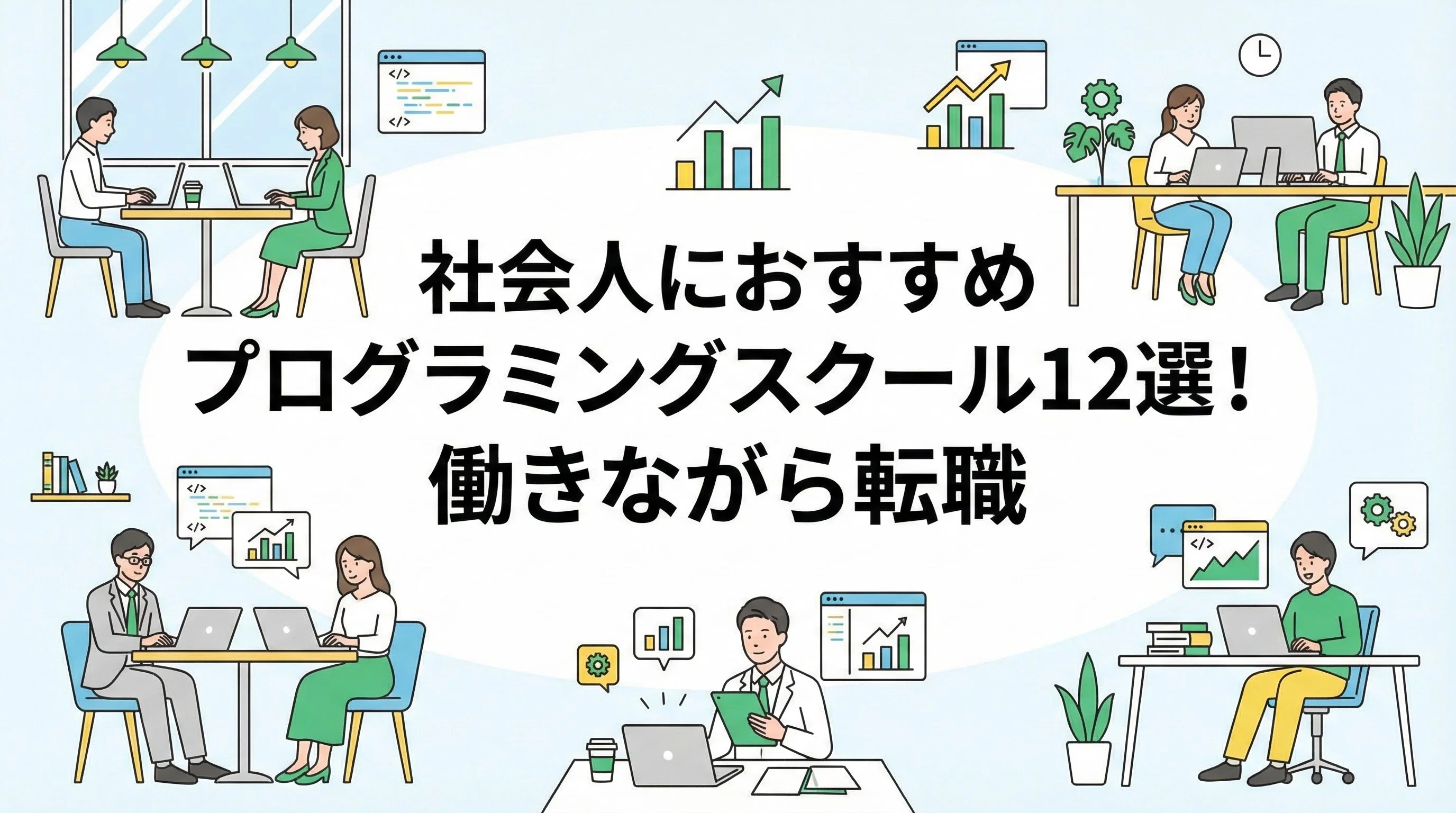 本記事では、働きながら転職を目指す社会人に本当におすすめできるプログラミングスクールを12校厳選し、徹底比較しました。