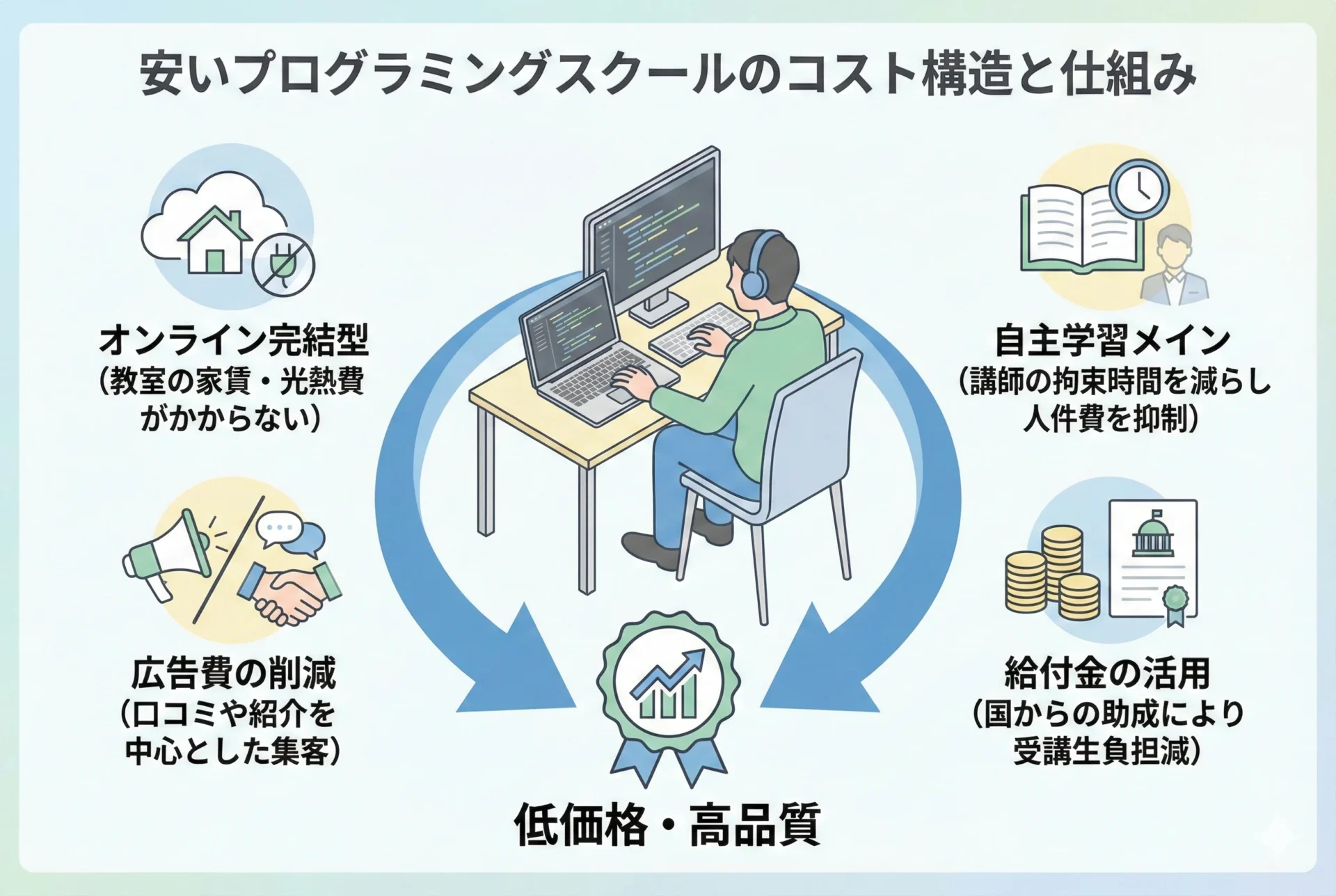 その仕組みを理解することで、自分に合ったスクールを選び抜くことができます。