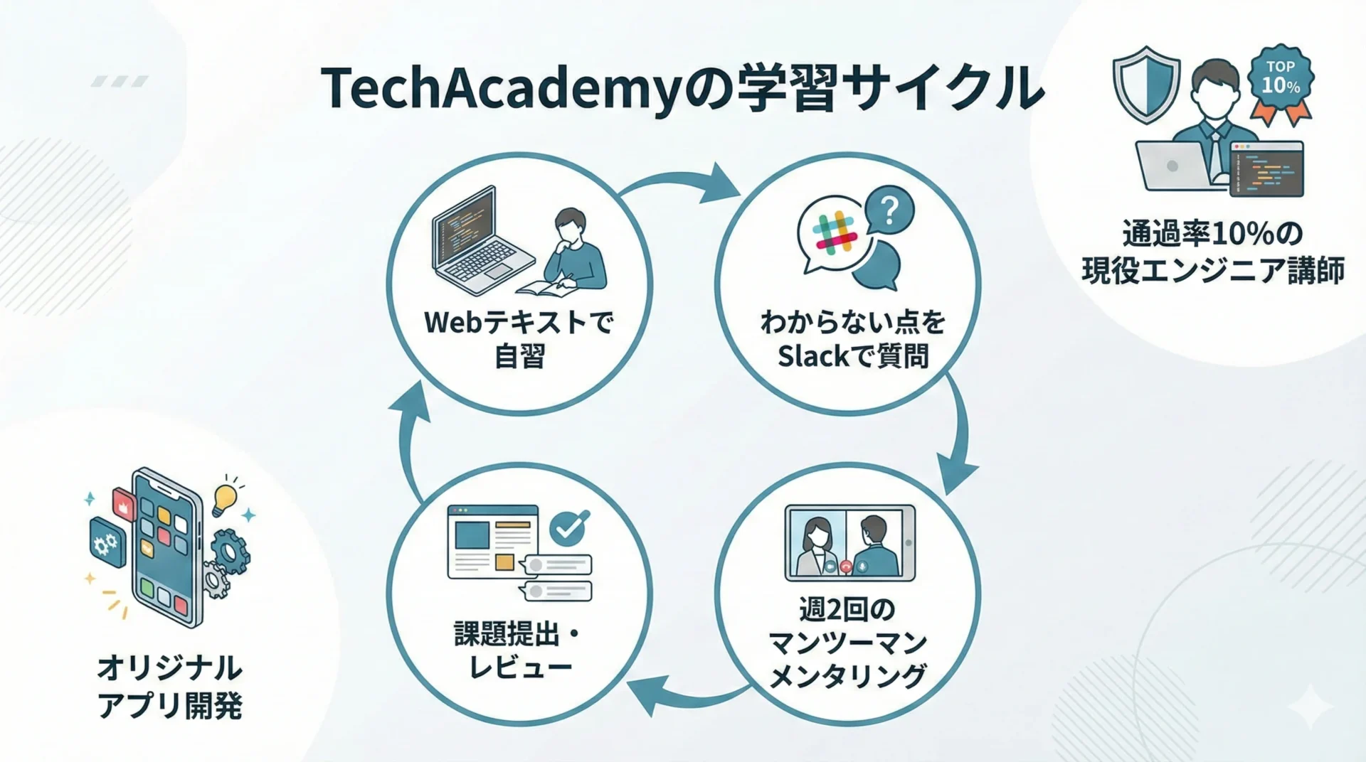 TechAcademyは、実務経験豊富な現役エンジニアが「パーソナルメンター」としてつくスタイルです。