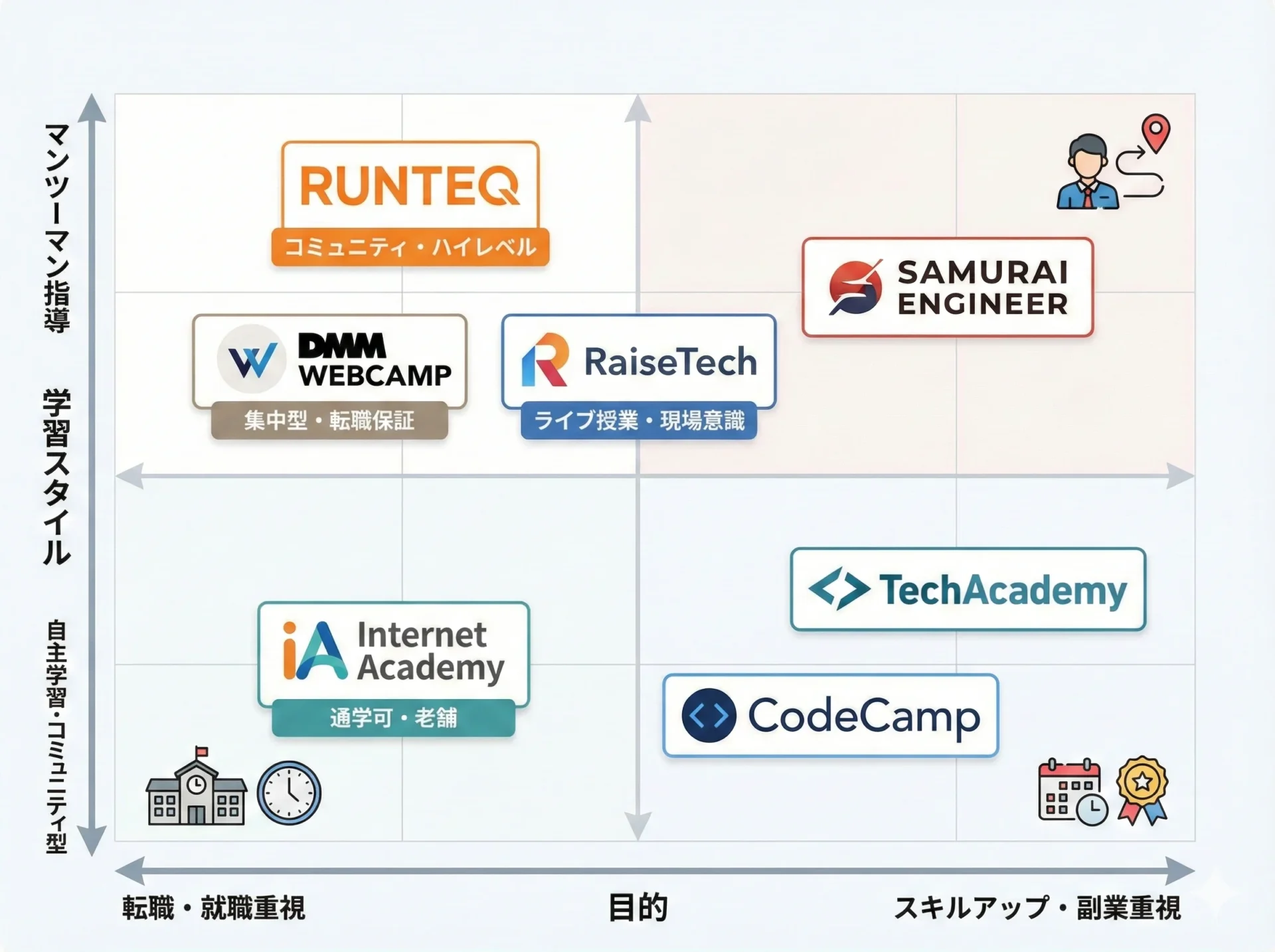 今回紹介した7つのスクールは、いずれも社会人の実績が豊富な場所ばかりです。