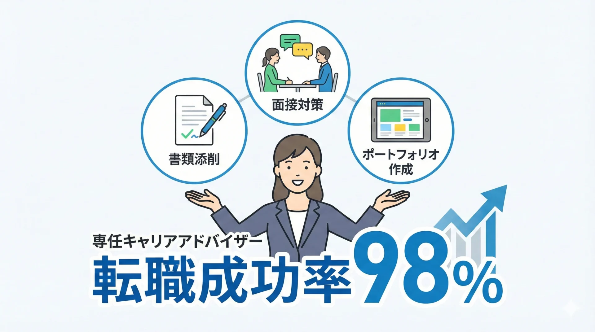 転職保証制度(条件あり)が付帯しているコースもあり、万が一転職できなかった場合の受講料返金保証があるため、リスクを恐れる社会人に選ばれています。