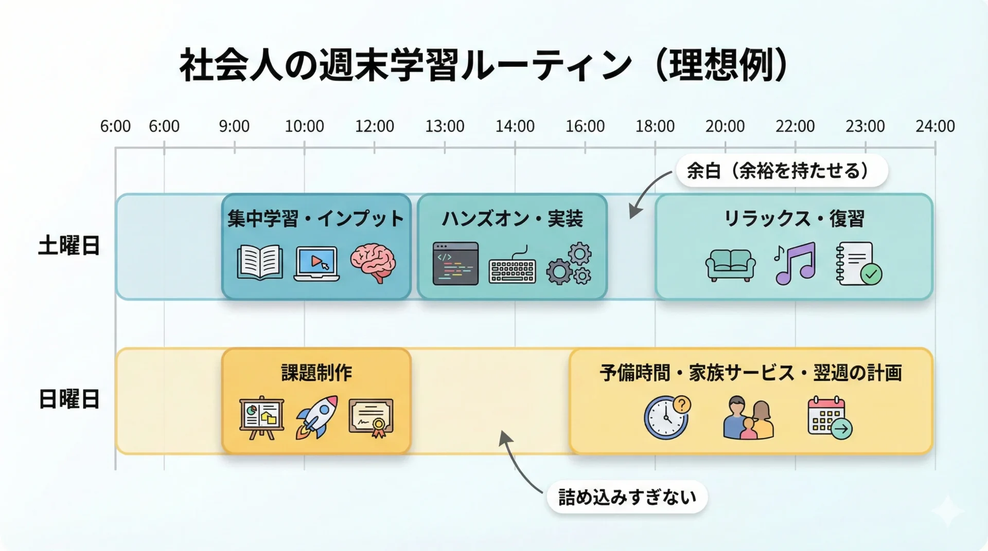 週末学習を軌道に乗せるための具体的なテクニックを紹介します。