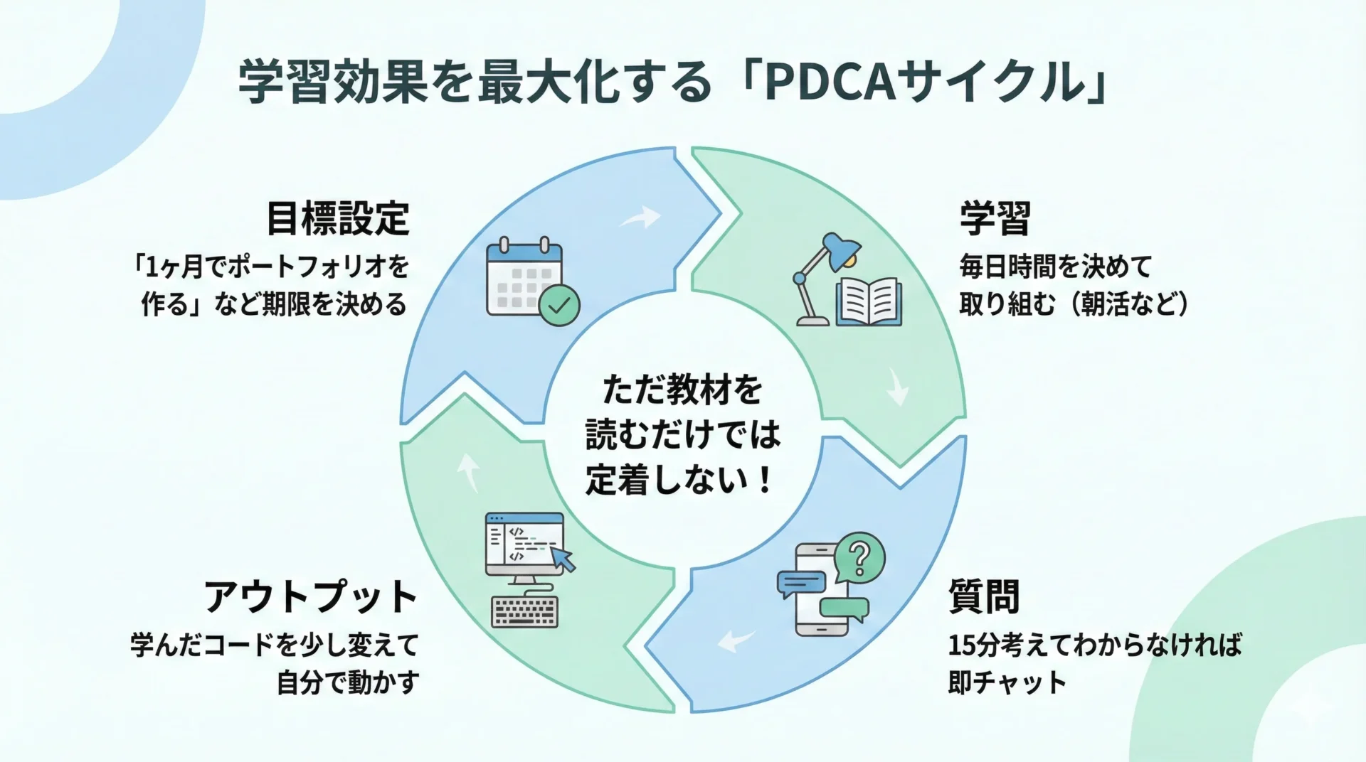 プログラミング学習において一番もったいないのは、「迷っている間に時間が過ぎてしまうこと」です。
