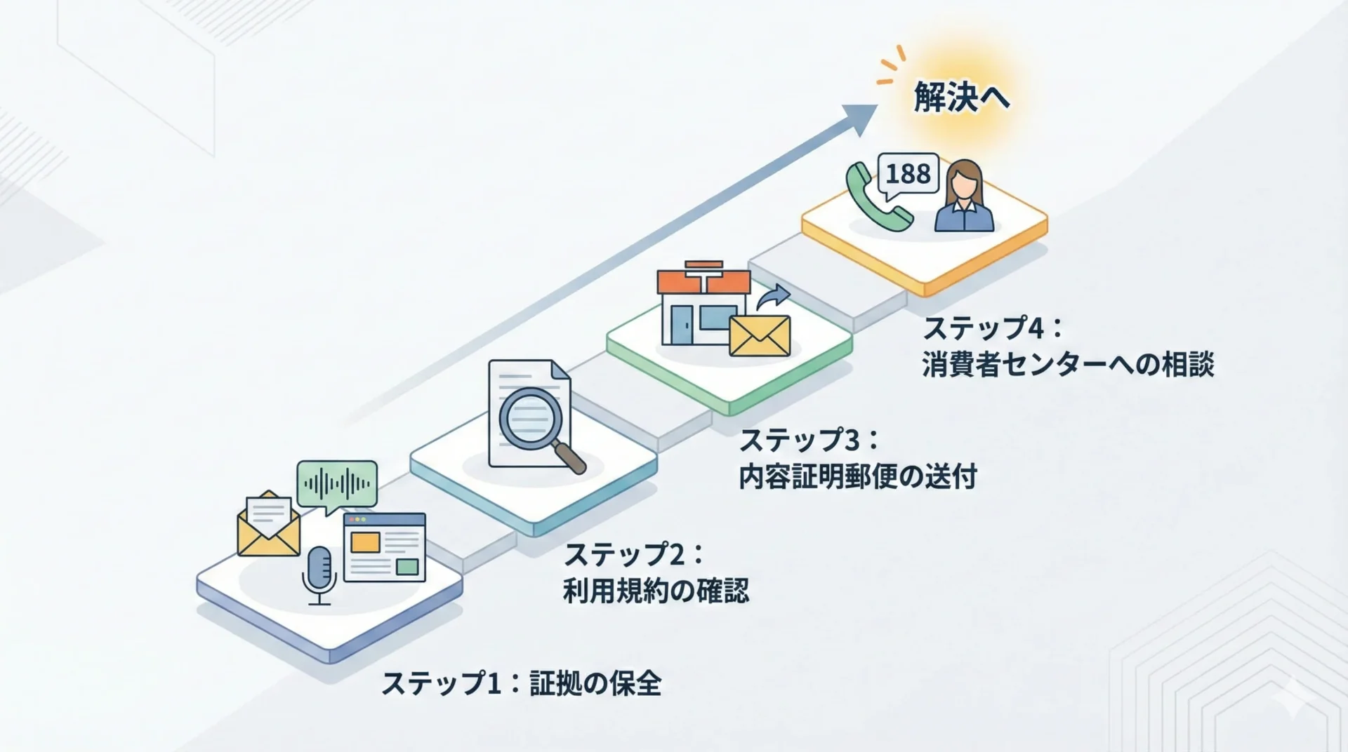 - 困ったらすぐに「188」へ電話する一人で悩まず、専門家である消費生活センターの力を借りましょう。