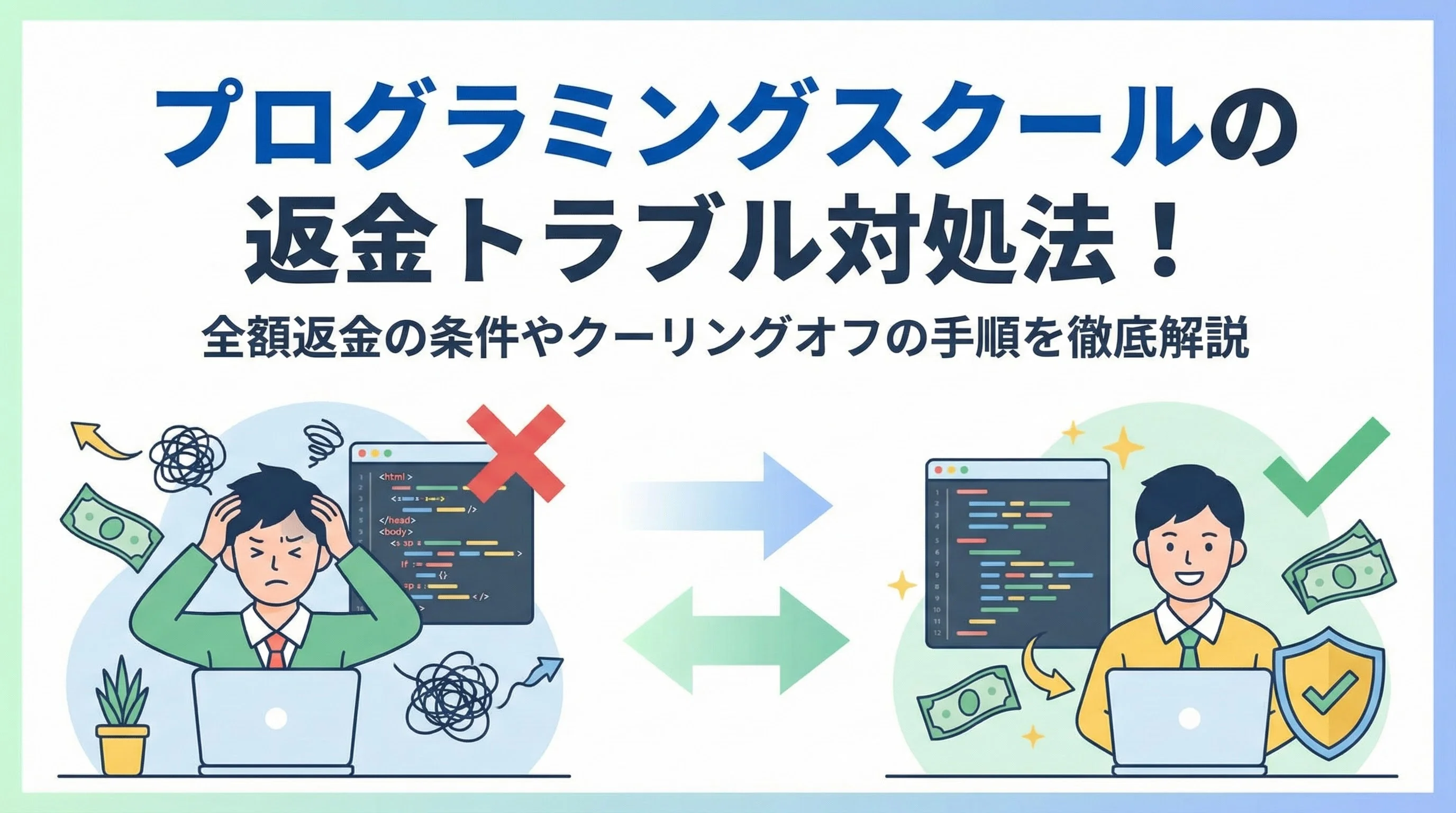 この記事では、プログラミングスクールの返金トラブルに直面している方に向けて、全額返金のための条件やクーリング・オフの適用範囲、具体的な交渉手順を徹底的に解説します。