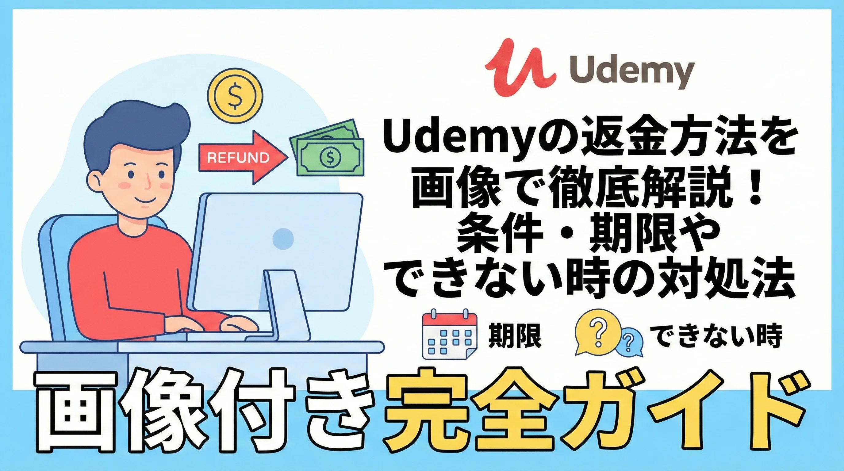 本記事では、Udemyで返金を行うための具体的な手順や、返金が認められるための条件、また「返金ができない」と困った時の対処法について、画像を交えて徹底的に解説します。