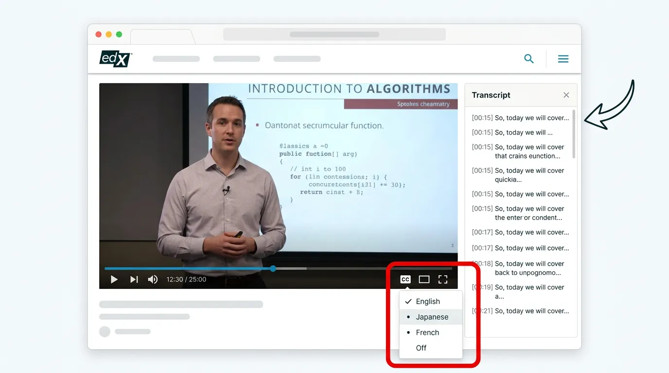 edXでは、一部の講座において 公式に日本語字幕 が提供されています。