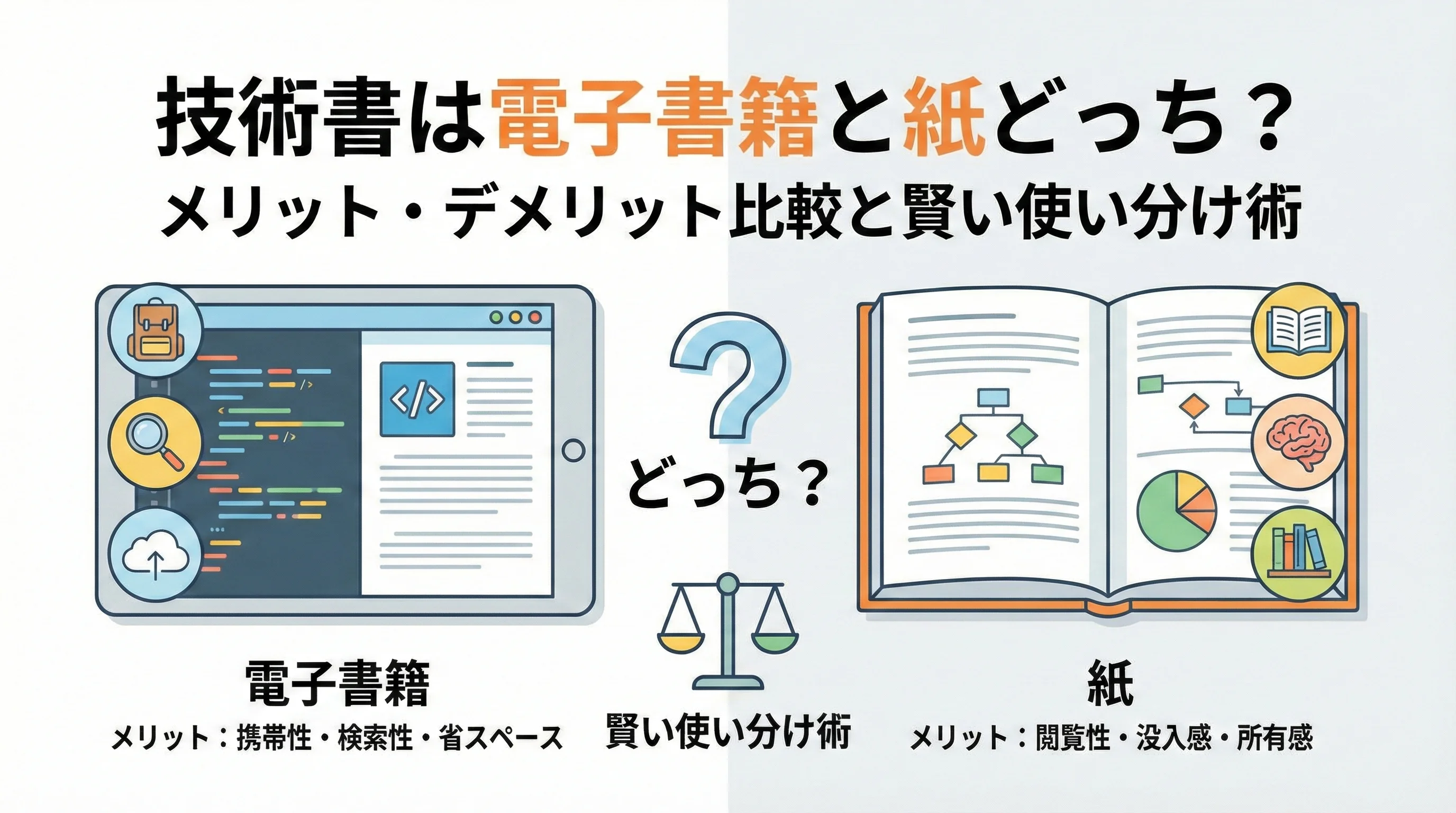 技術書は電子書籍と紙どっち?メリット・デメリット比較と賢い使い分け術