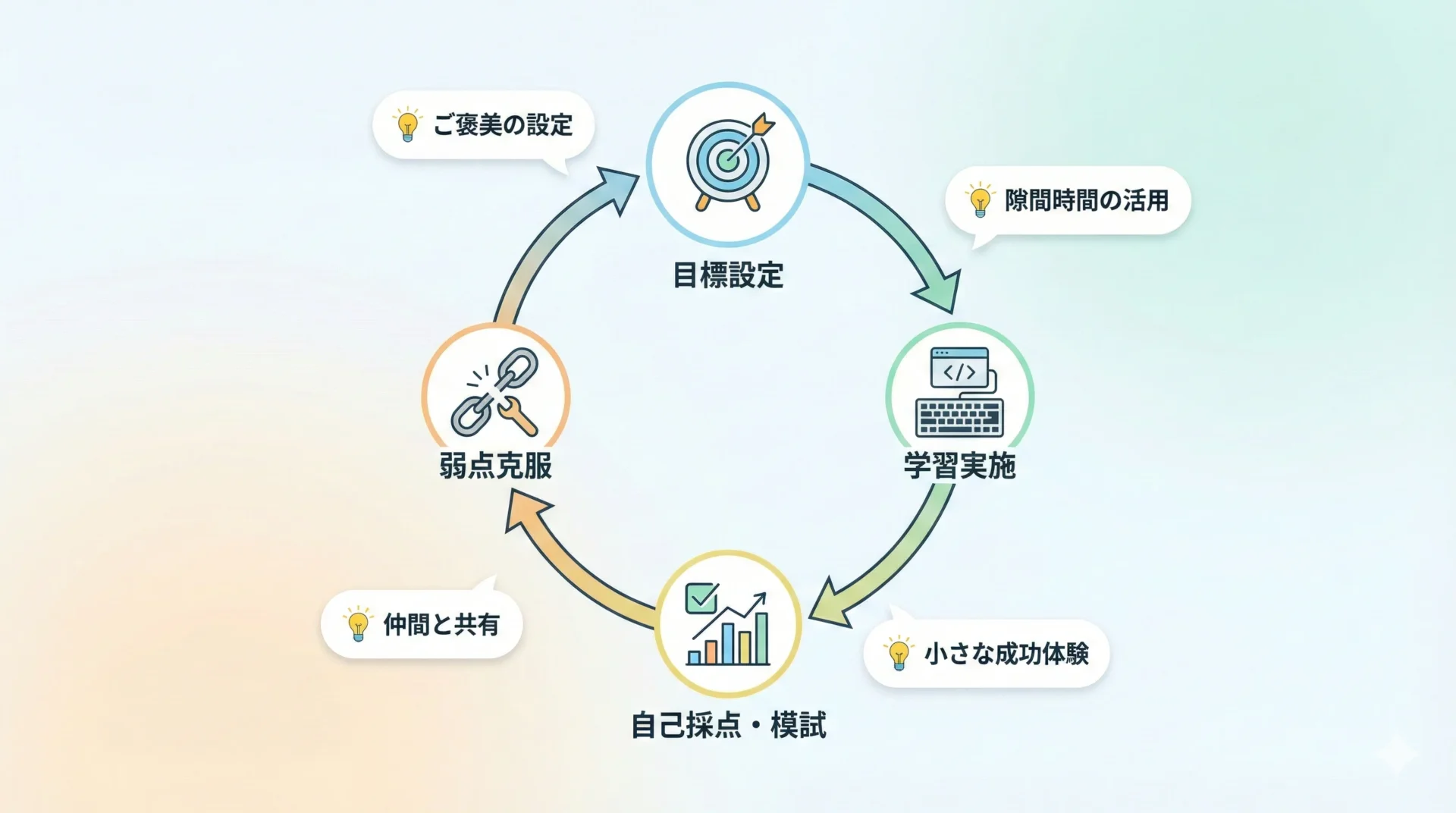 これらを意識するだけで、無駄な学習時間を大幅に削ることができます。