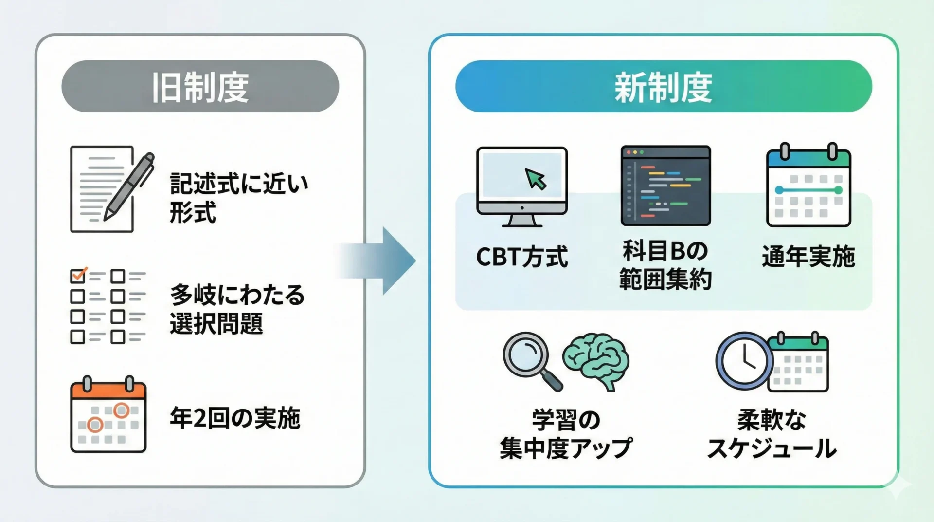 新制度のCBT方式に合わせた効率的な学習スケジュールを組み、特に「科目B」のアルゴリズム対策に重点を置くことが、最短ルートを突き進む鍵となります。