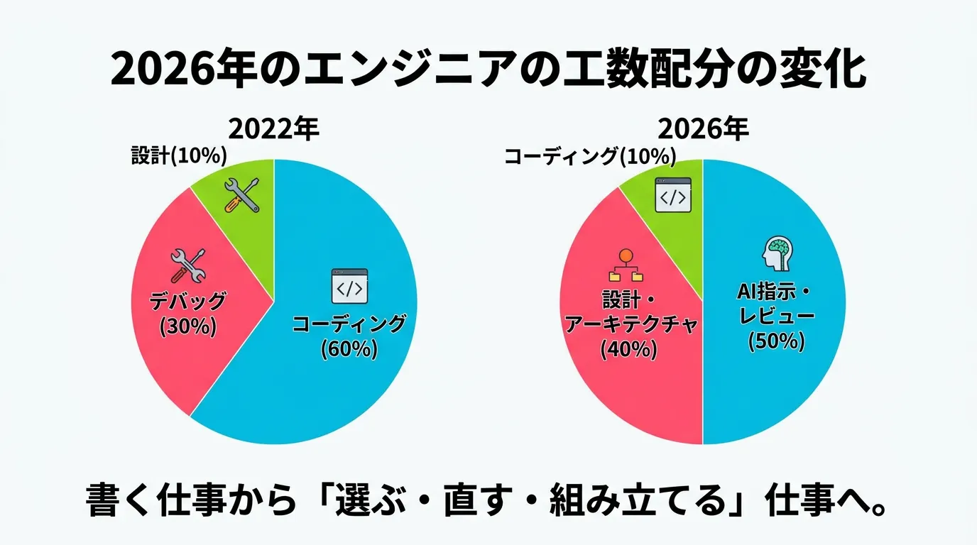 シニアエンジニアの役割は、AIが出力したコードがビジネスロジック的に正しいか、セキュリティホールがないかを確認する「レビュアー」へと変化しました。