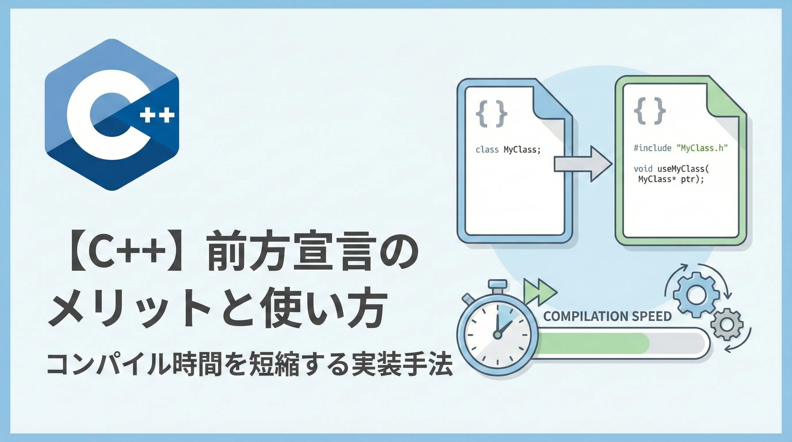 前方宣言は、C++のコンパイルプロセスを最適化し、クリーンな設計を維持するための最も費用対効果の高いテクニックです。