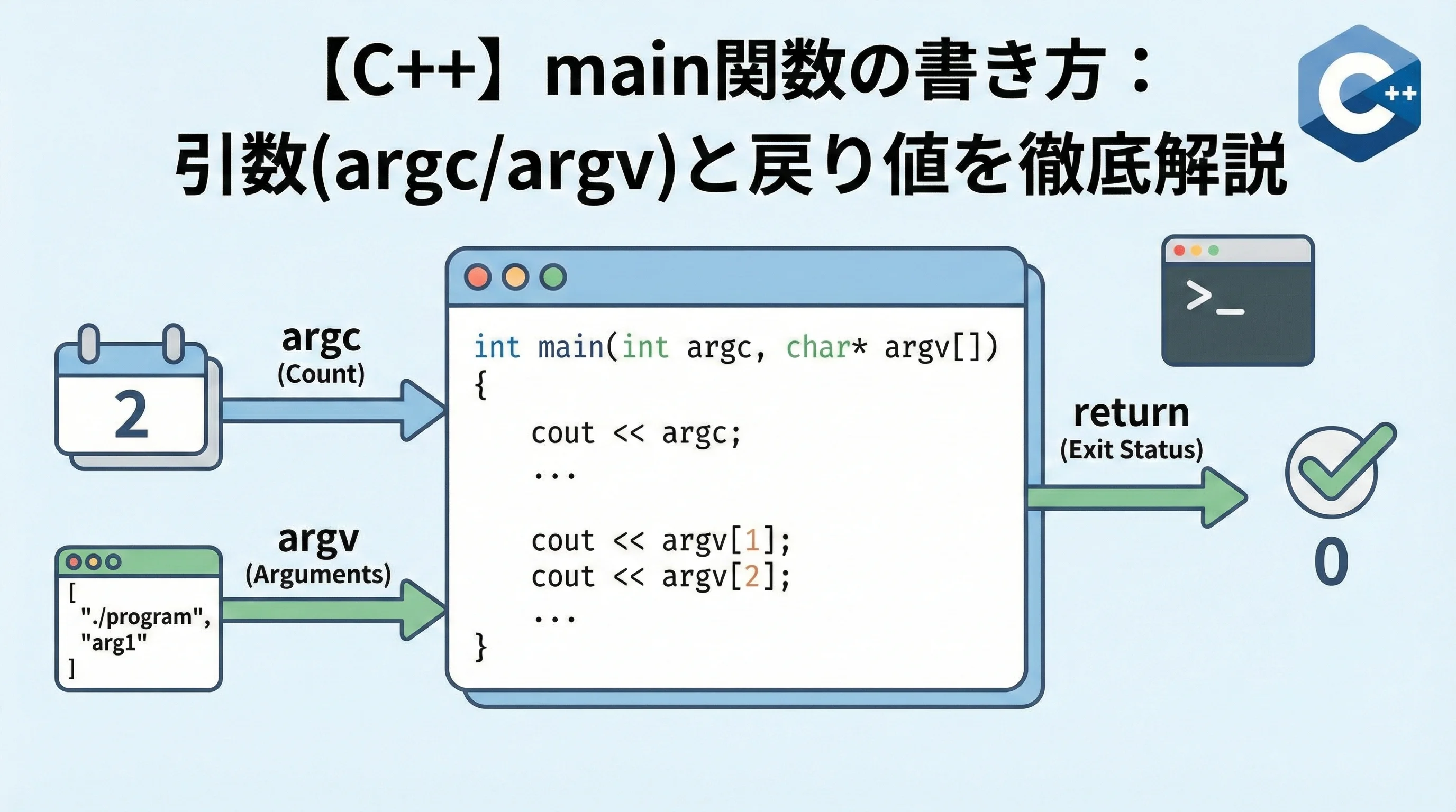 【C++】main関数の書き方:引数(argc/argv)と戻り値を徹底解説