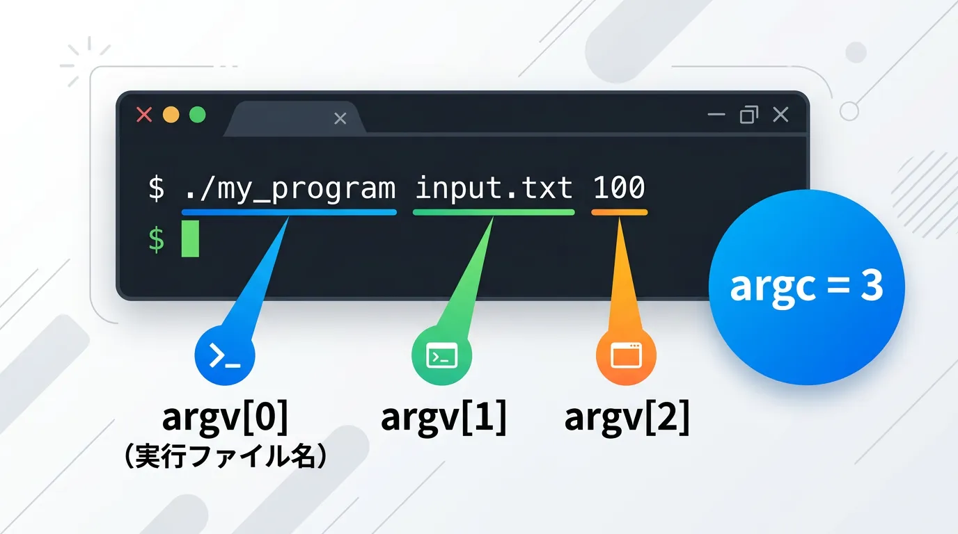 また、argcargvを活用することで、外部から動的にパラメータを与えられる柔軟なツールを作成できるようになります。