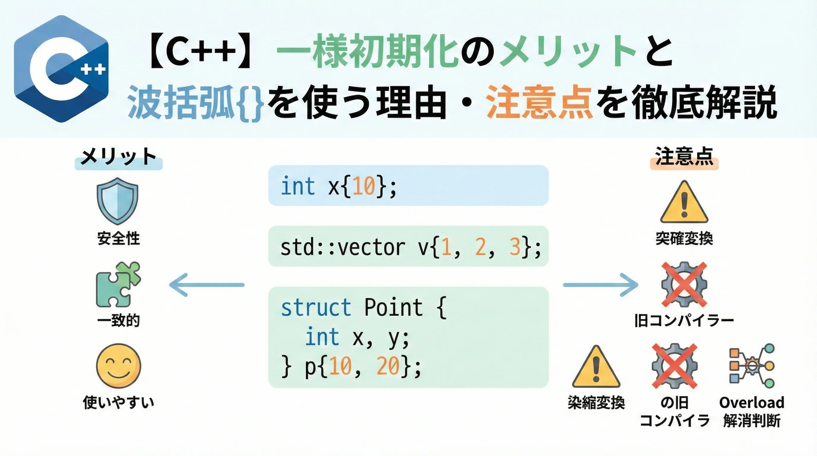 本記事では、現代的なC++プログラミングにおいてなぜ波括弧による初期化が推奨されるのか、そのメリットと注意点を、初心者から中級者の方まで納得できる形で徹底的に解説します。