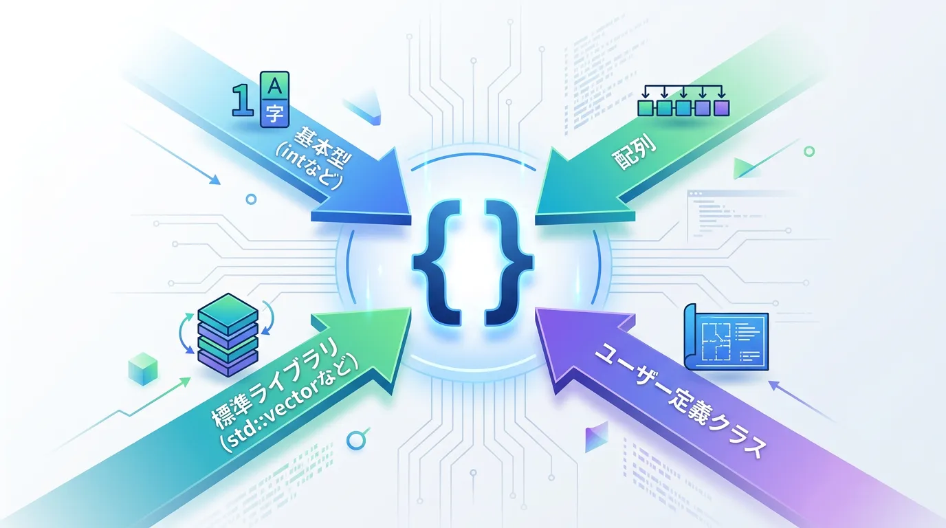 かつてのC++では、基本型、配列、構造体、クラスなどでそれぞれ異なる初期化の記述が必要でしたが、一様初期化の登場により、あらゆるオブジェクトを同じスタイルで記述できるようになりました。