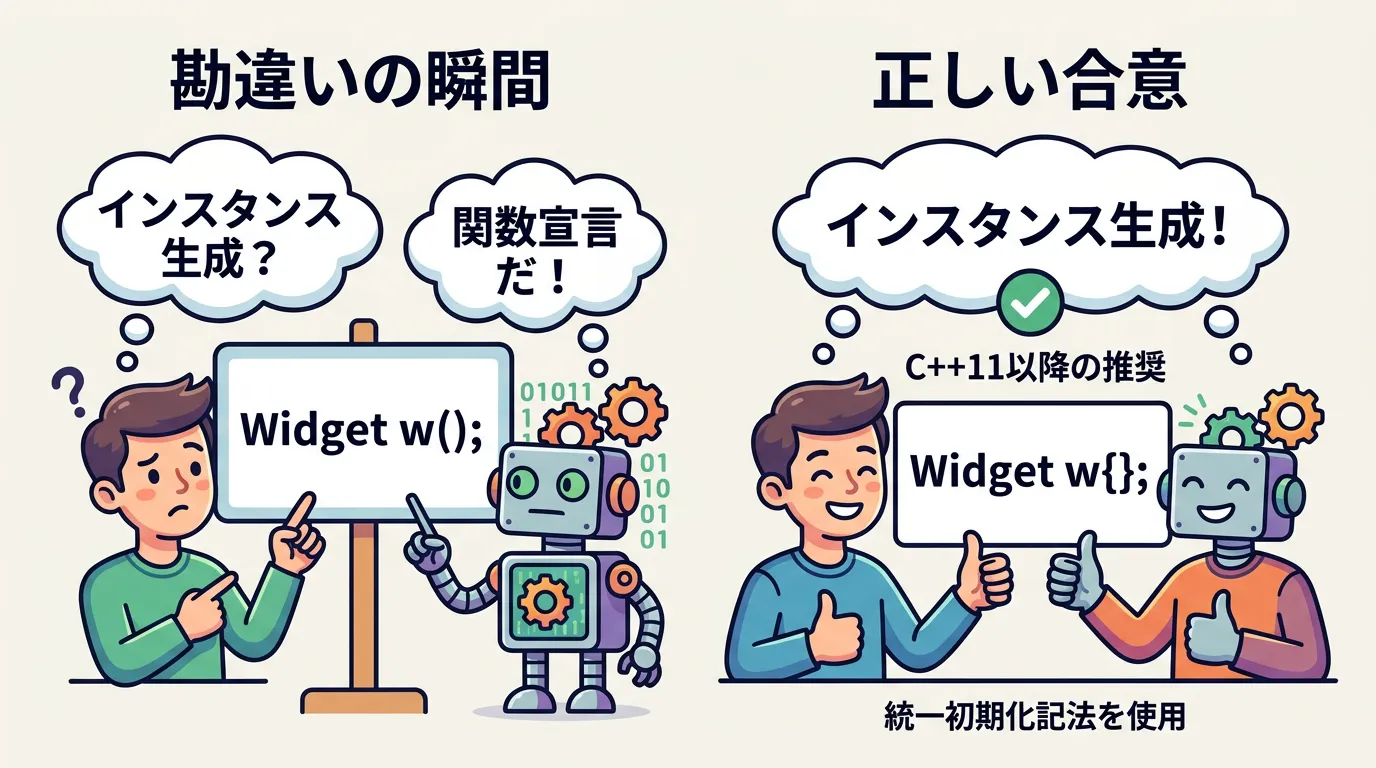 波括弧を使うことで、この曖昧さを完全に排除し、常に意図した通りにオブジェクトを初期化することが可能になります。