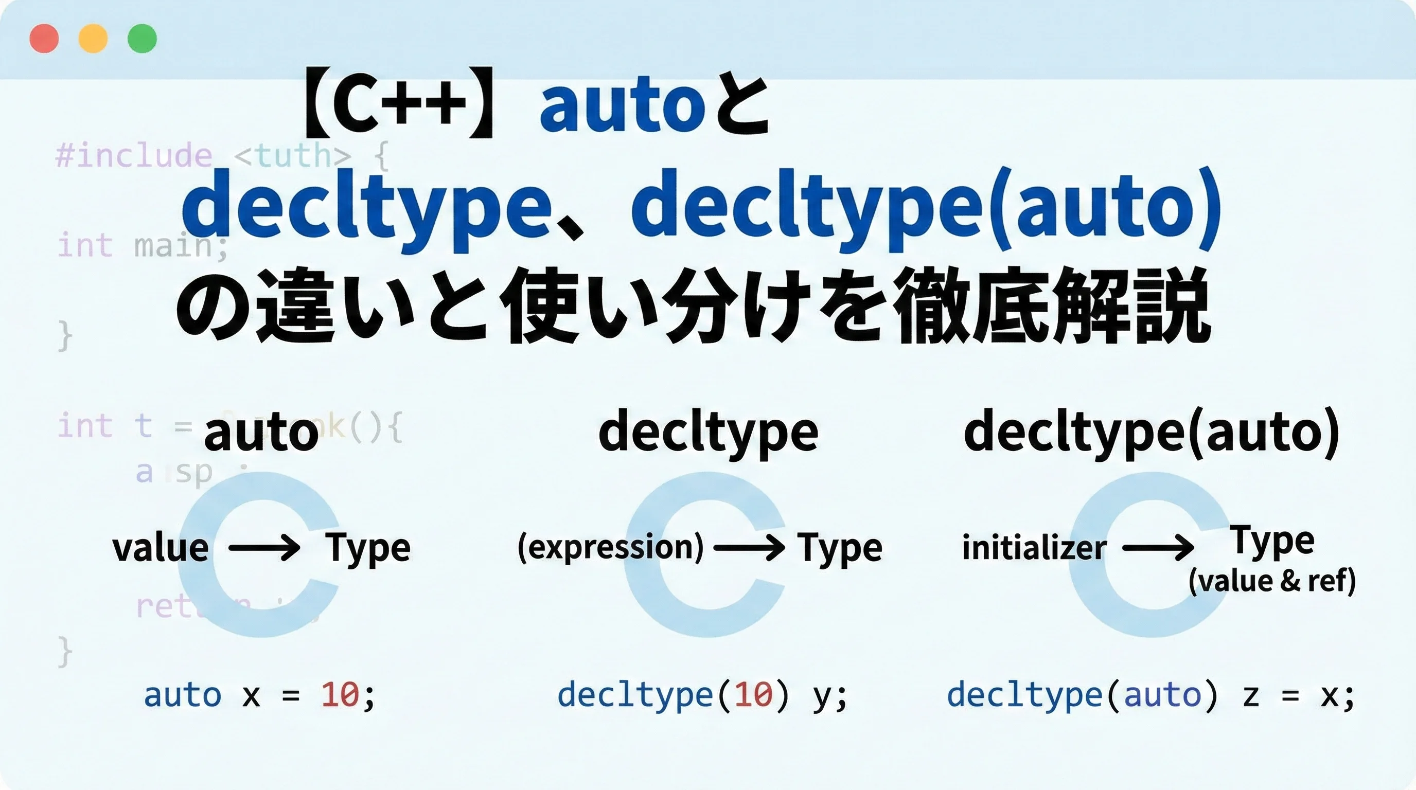 【C++】autoとdecltype、decltype(auto)の違いと使い分けを徹底解説