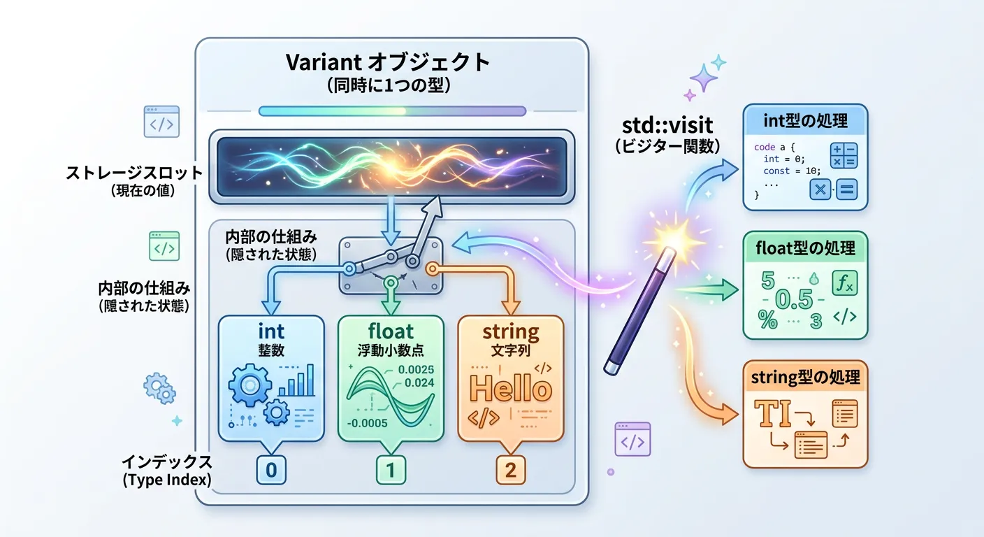 本記事では、テンプレート、std::variantstd::anyといった現代的な機能を駆使して、安全かつ効率的なコードを書くための手法を徹底的に解説します。