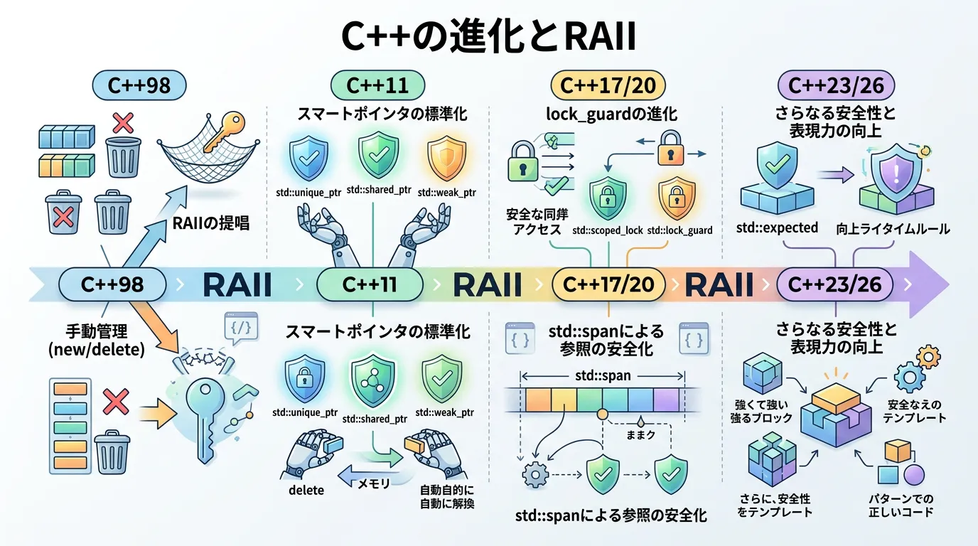 モダンC++においてRAIIを理解することは、安全で堅牢なコードを書くための第一歩となります。