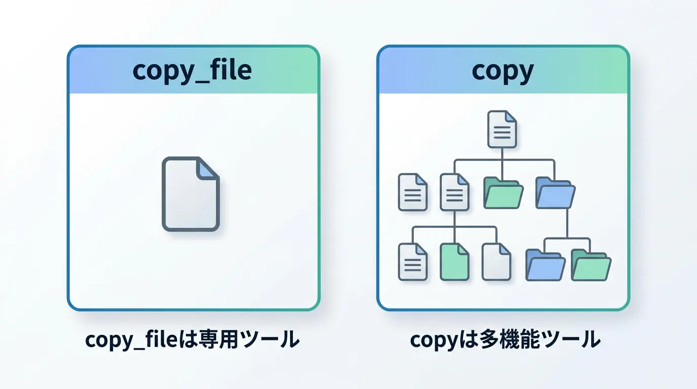 その中でもcopy_fileは、ファイルコピーに特化した強力なツールとして位置づけられています。