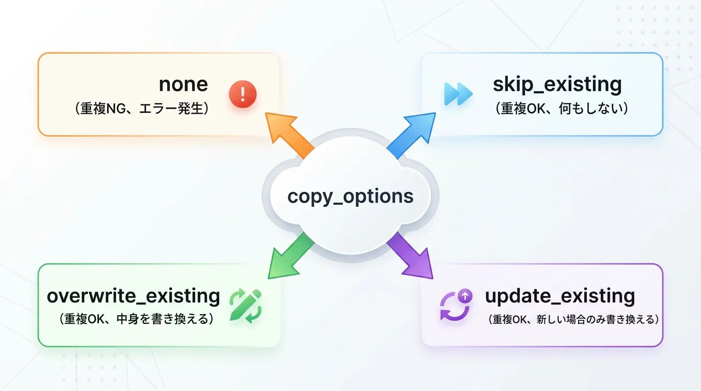 copy_optionsを使って、上書き、スキップ、更新のみ、といった柔軟な設定を行う。 - 安全性:コピー先の親ディレクトリが存在するか、事前に確認または作成する。