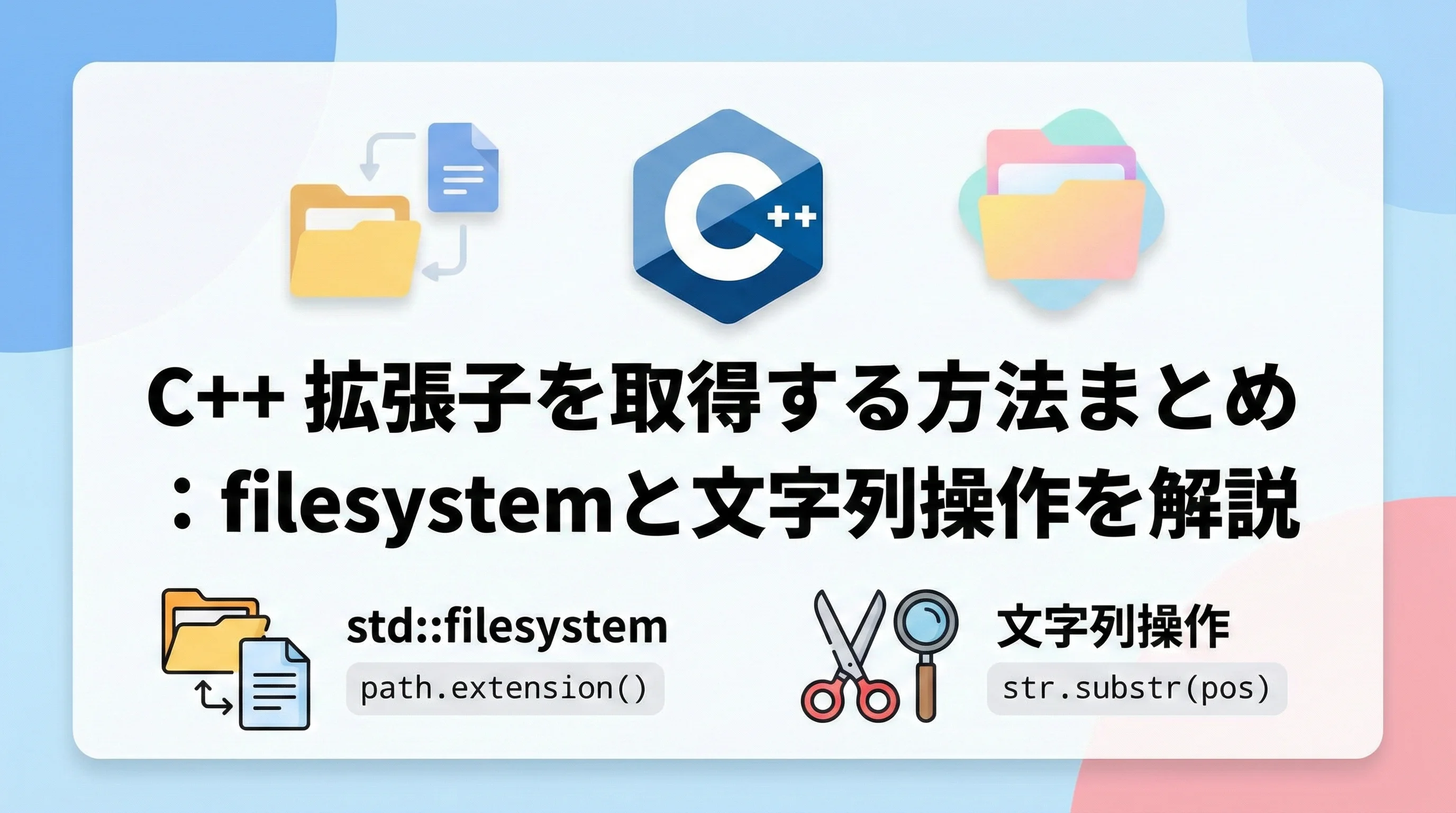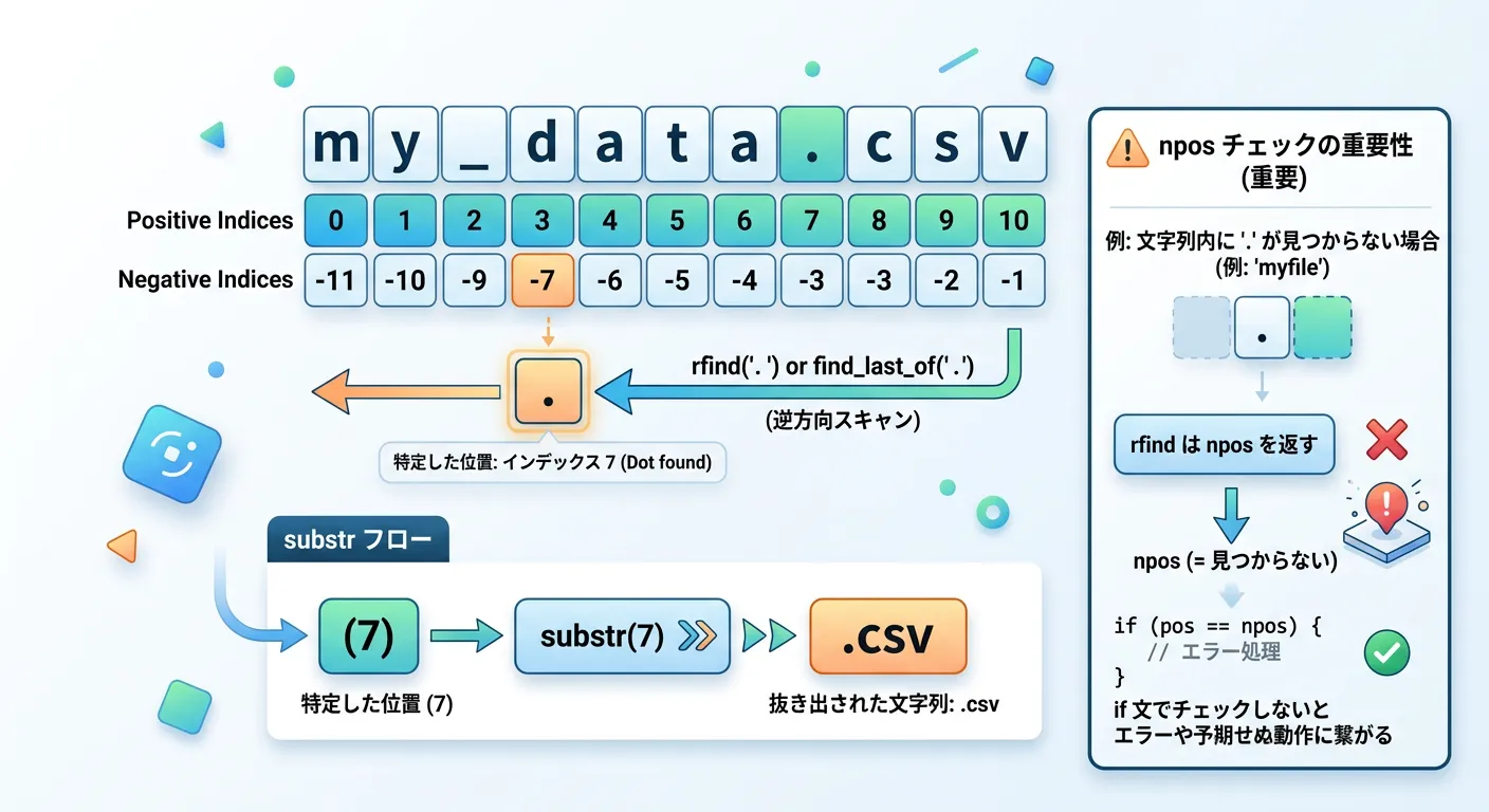 C++でファイル操作を行う際、ファイル名から拡張子を抽出する処理は非常に頻繁に発生します。