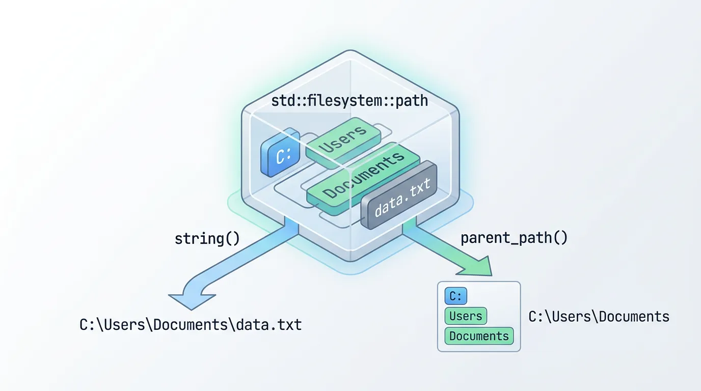 取得したパスはstd::filesystem::pathオブジェクトとして管理され、/演算子による結合や、各種文字列形式への変換も容易に行えます。