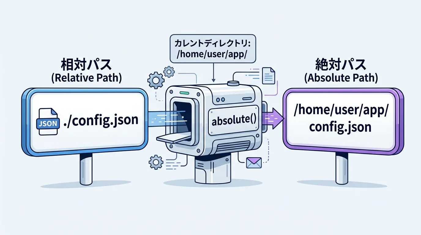 カレントディレクトリを取得する技術の応用として、相対パスから絶対パスを導き出す方法があります。
