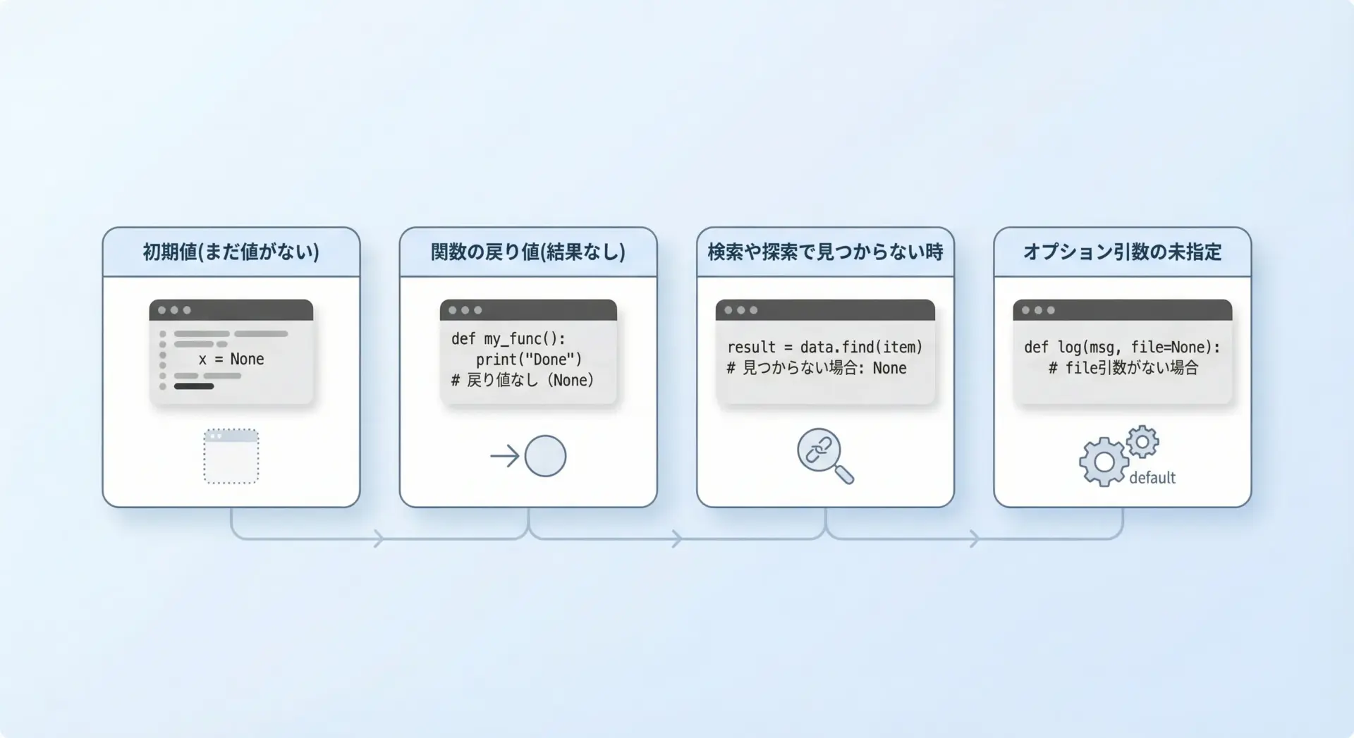 「何もない」「未設定」「結果なし」といった状態は、すべてNoneで表現します。