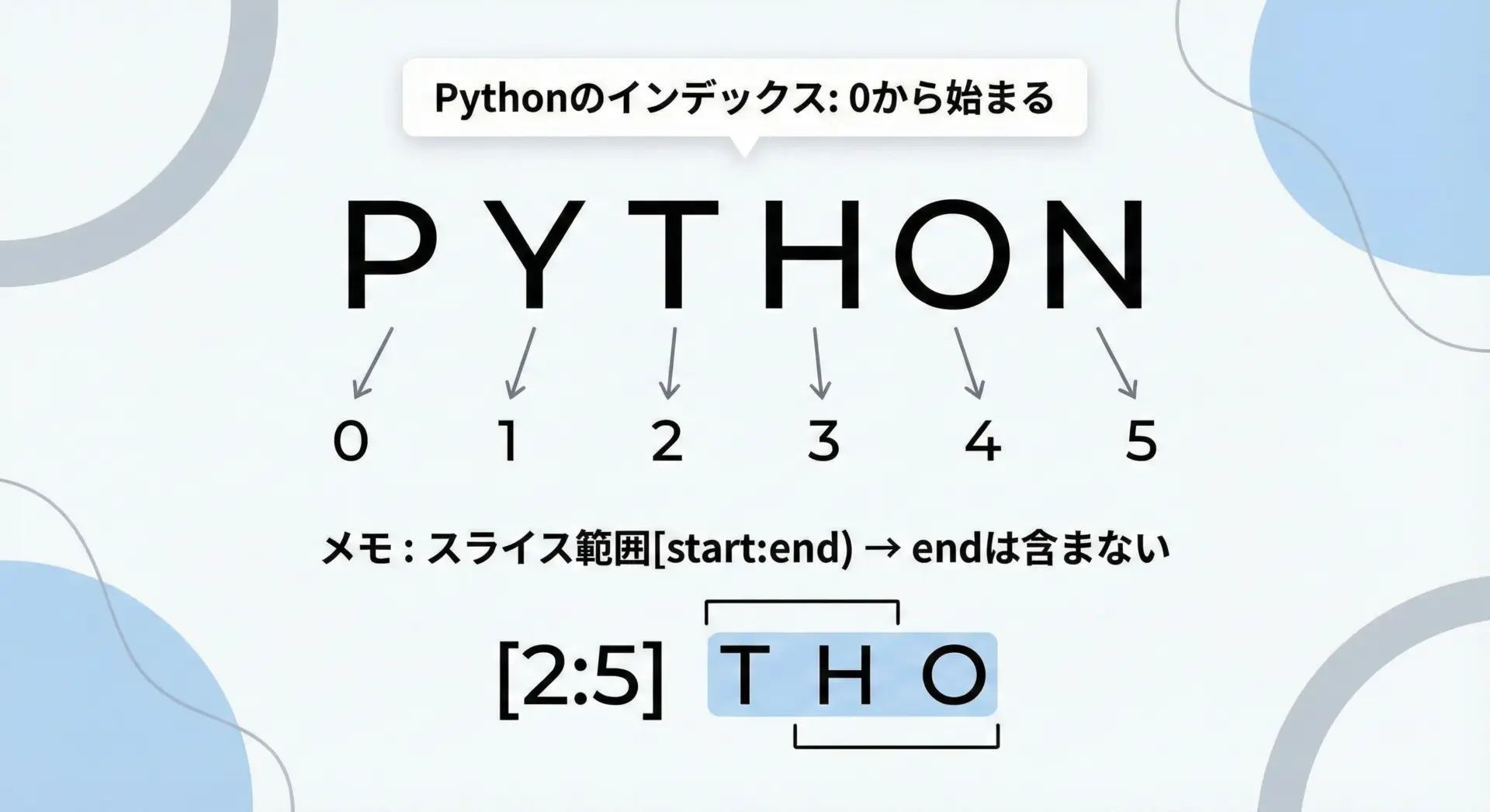 まず、Pythonのインデックスは0から始まるという点です。