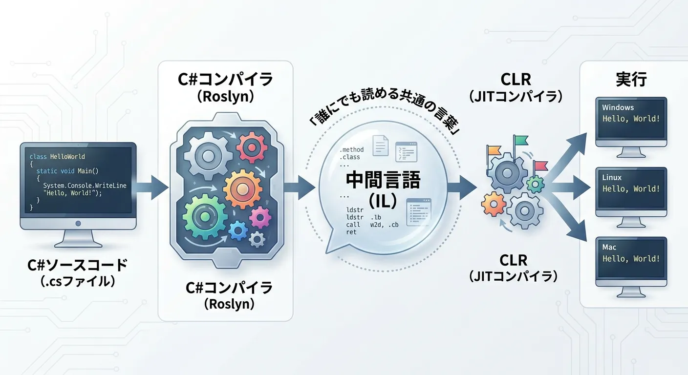 コンパイルの仕組み:中間言語(IL)の存在