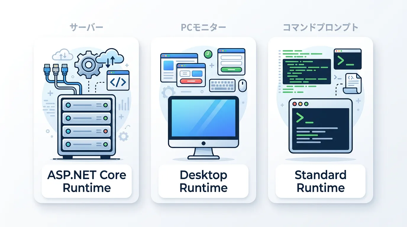 .NET Runtimeには、動かしたいアプリケーションの種類に合わせていくつかのバリエーションが存在します。