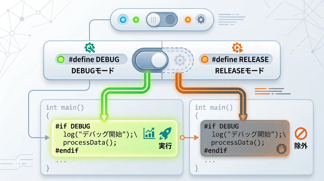 大規模なコード修正や、特定の環境(デバッグ時のみなど)でコードを無効化したい場合、通常のコメントアウトではなくプリプロセッサ命令を使用することがあります。