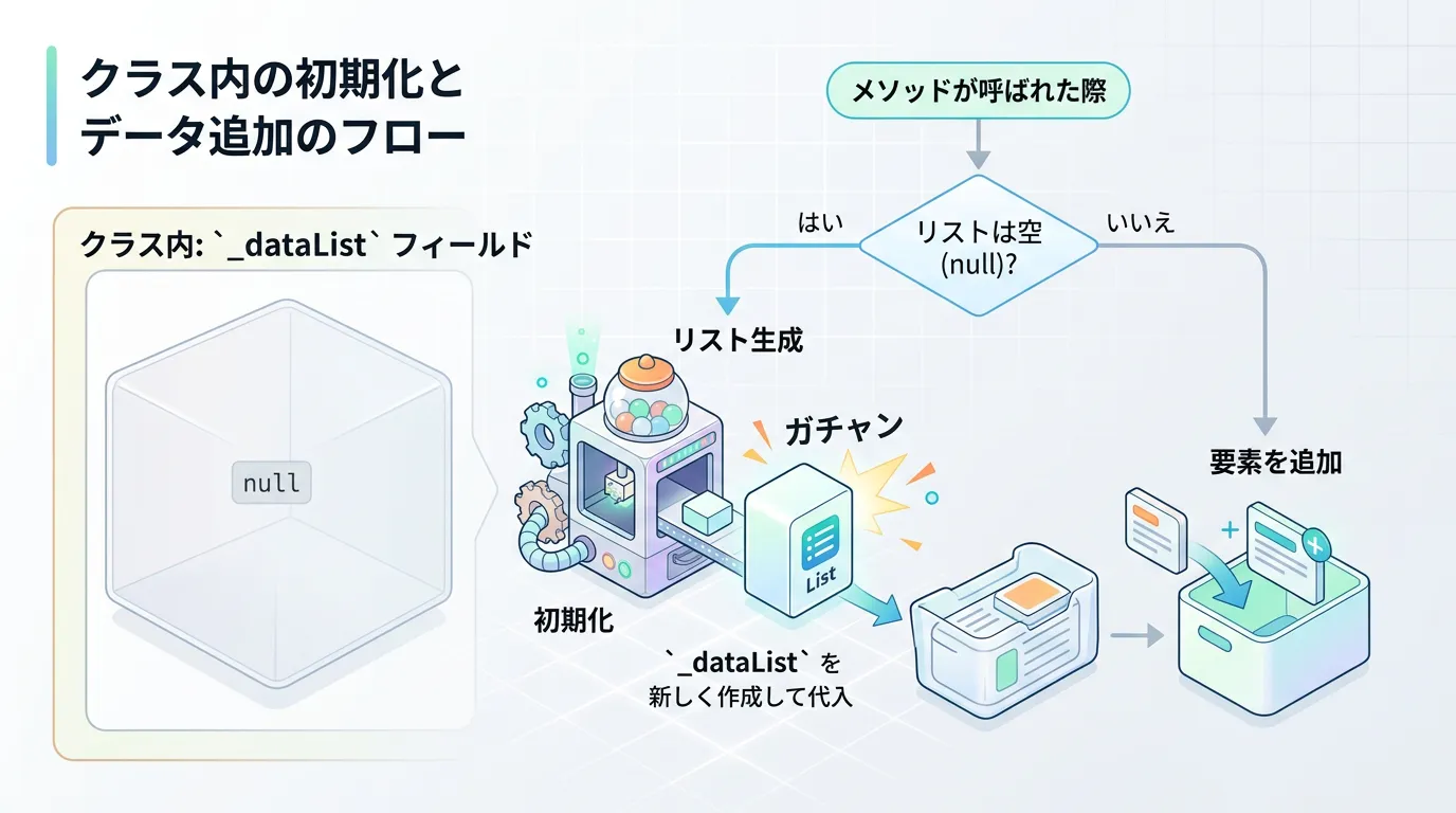 // _dataList が null の場合のみ、新しいインスタンスを生成して代入