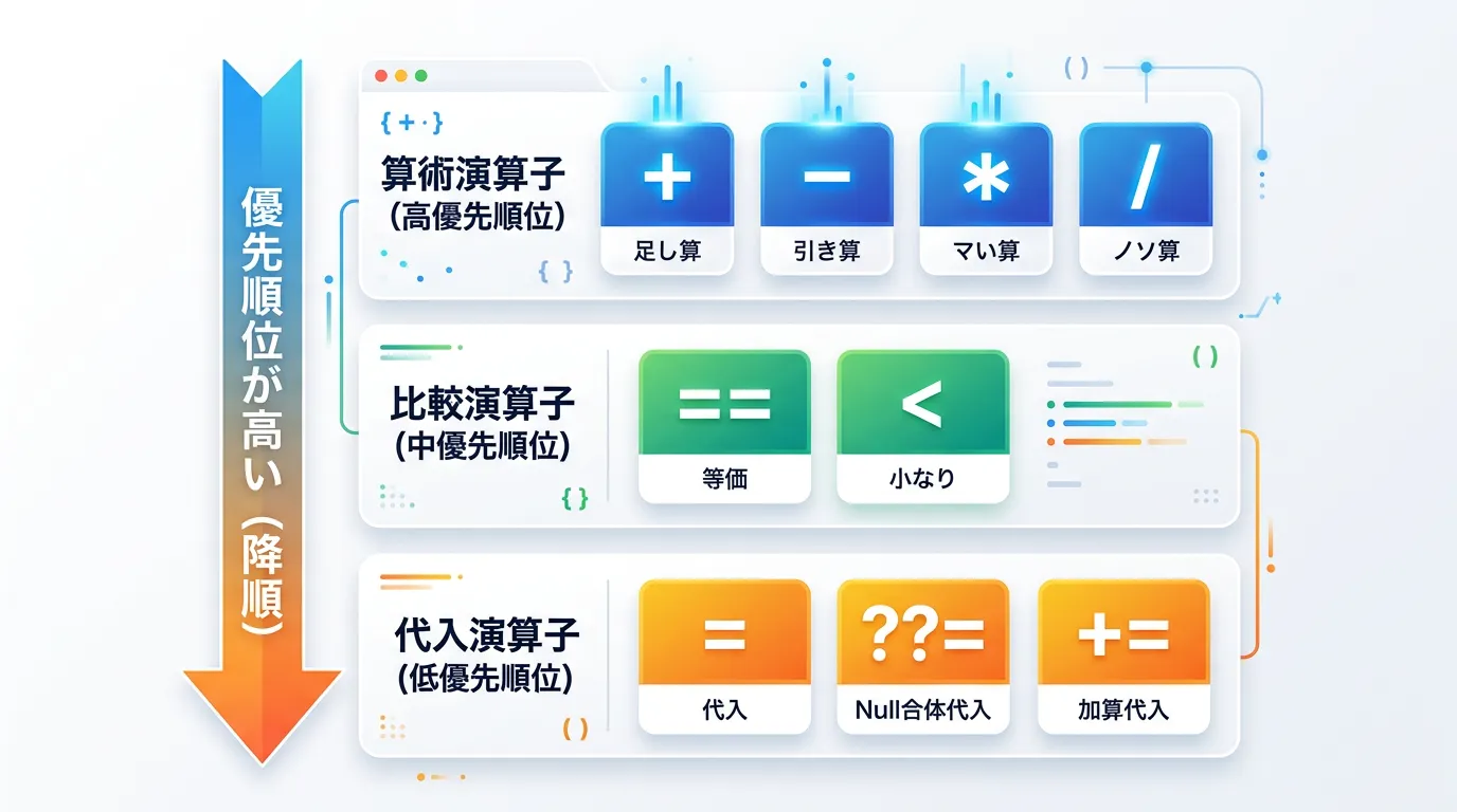 | 演算子 | 名称 | 主な役割 |